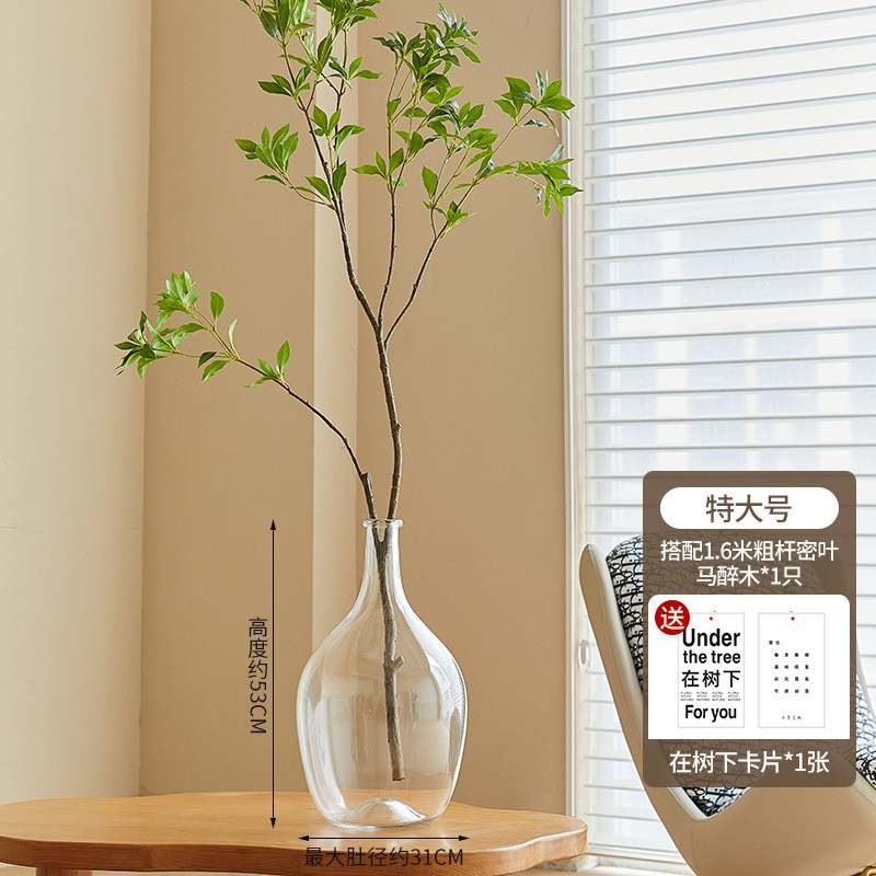 马醉落地大肚瓶玻璃花瓶摆件客厅插花透明水养吊钟大号木摆件
