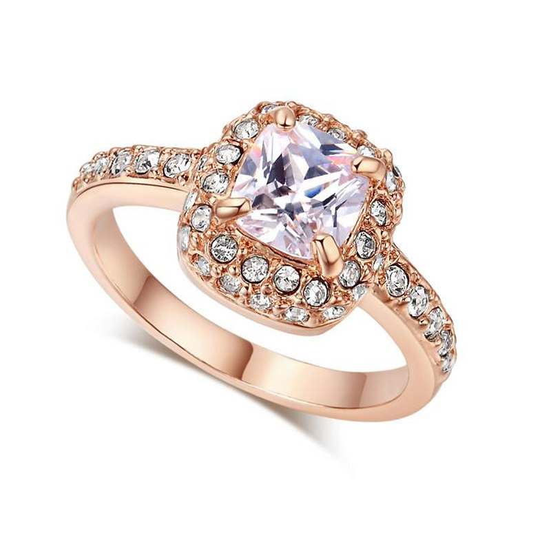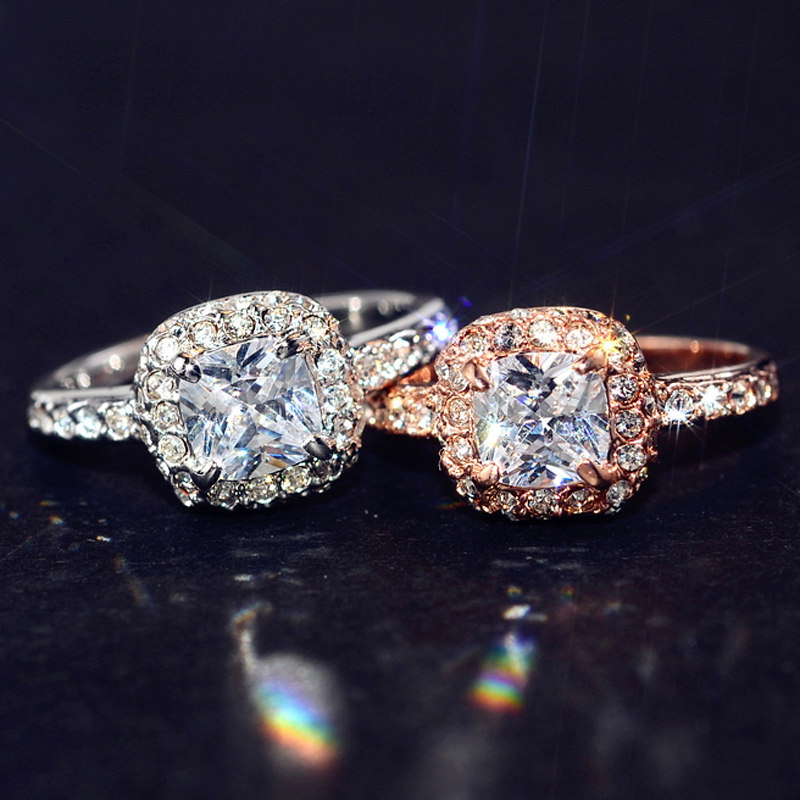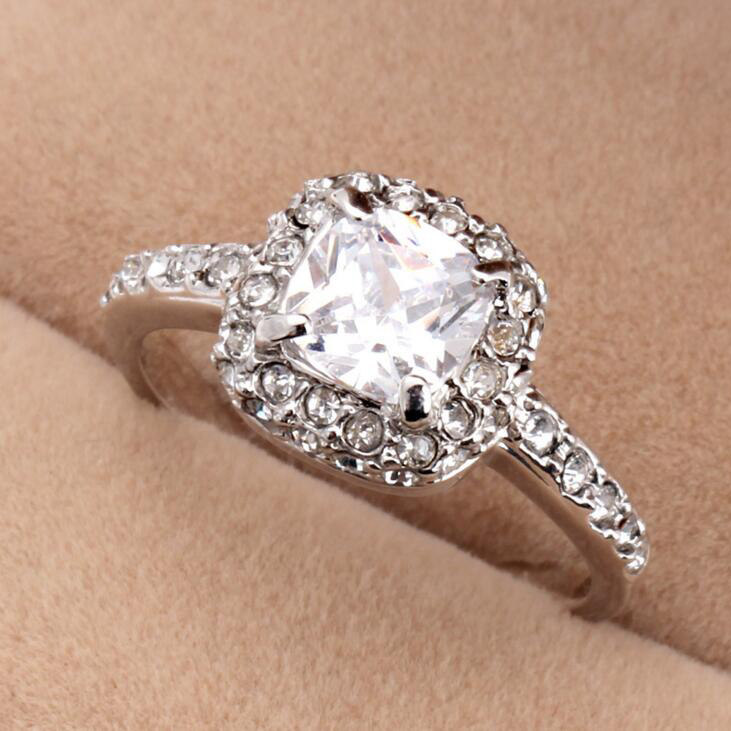欧美优雅夸张公主方形1克拉仿真钻戒水晶戒指新娘结婚首饰品女