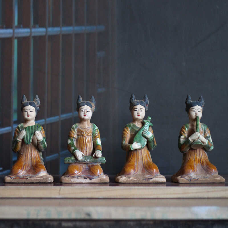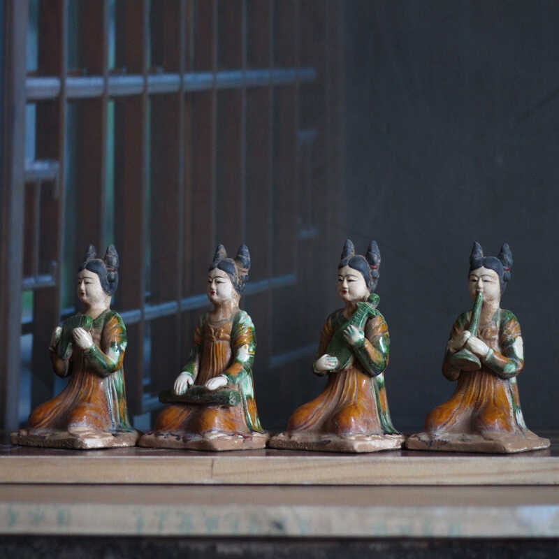 仿古唐三彩乐器佣胖妞侍女俑老物件瓷器陶器古玩收藏影视道具装饰