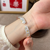航达银匠 描金小雏菊开口实心心经银手镯足银999国风银镯2025女款
