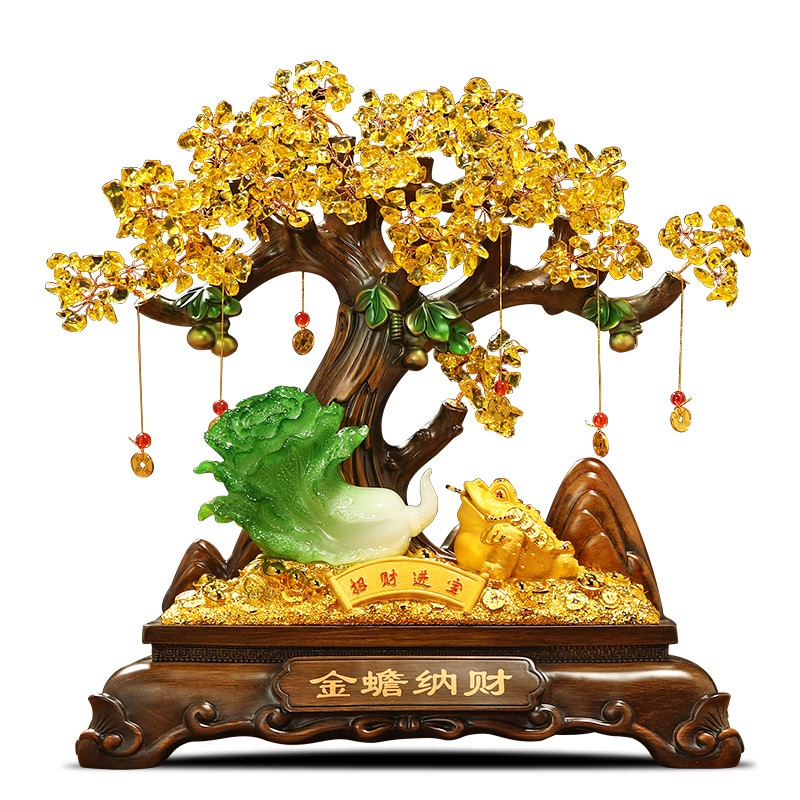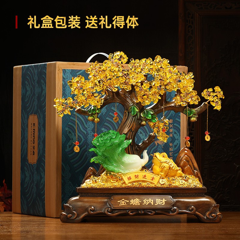 金蟾招财玉白菜发j财树工艺品摆件办公室收银台装饰品开店开业礼