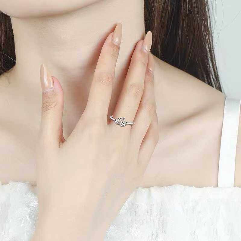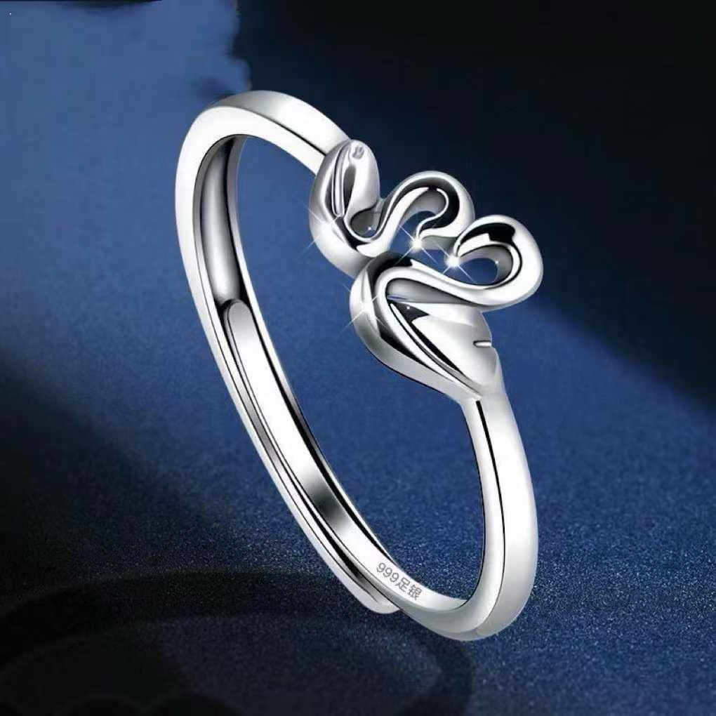 足银990纯银戒指天鹅情侣对戒男女款高级开食指戒送女友闺蜜礼物