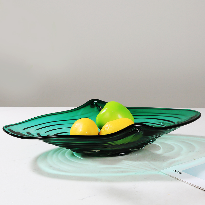 轻奢艺术玻璃加厚艺术水果盘简约现代客厅桌面收纳盘样板房装饰品