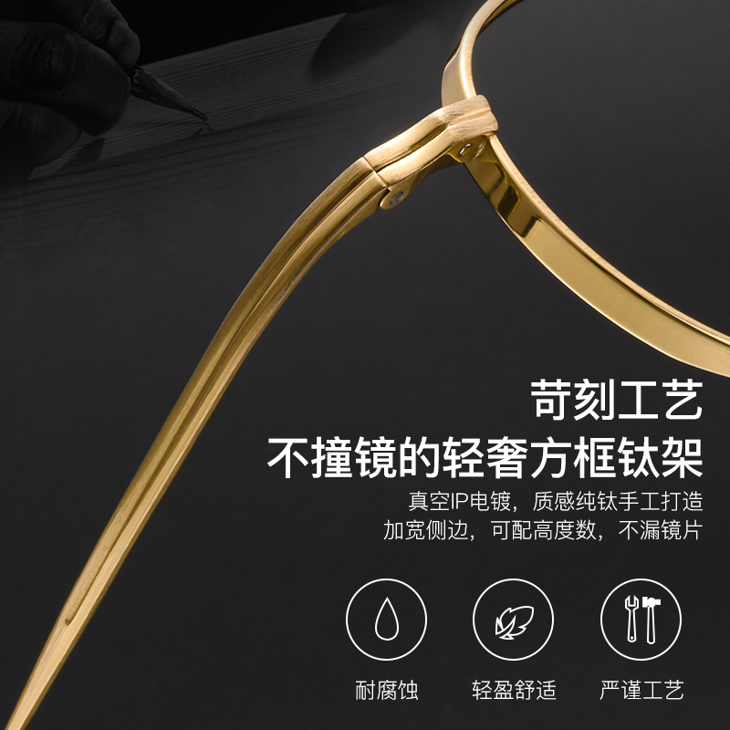 日系复古纯钛超轻眼镜框男可配近视镜片高度数宽边金色椭圆钛架女