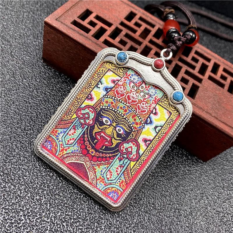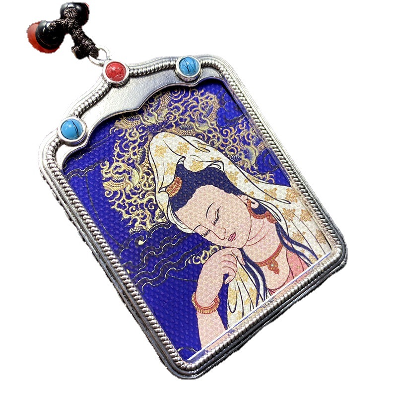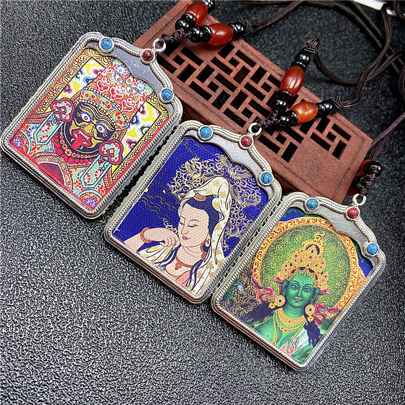 唐卡吊坠嘎乌盒画盒绿度母挂坠旅游景区纪念毛衣链
