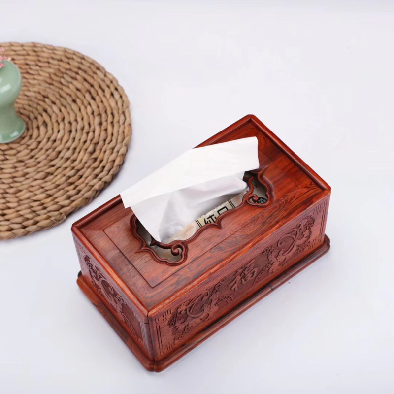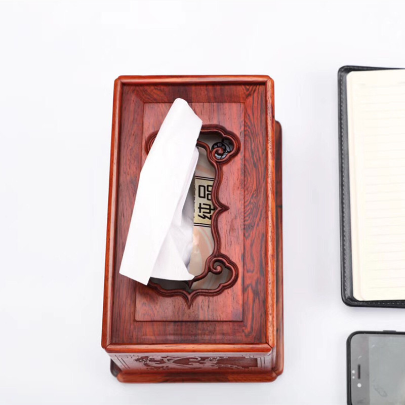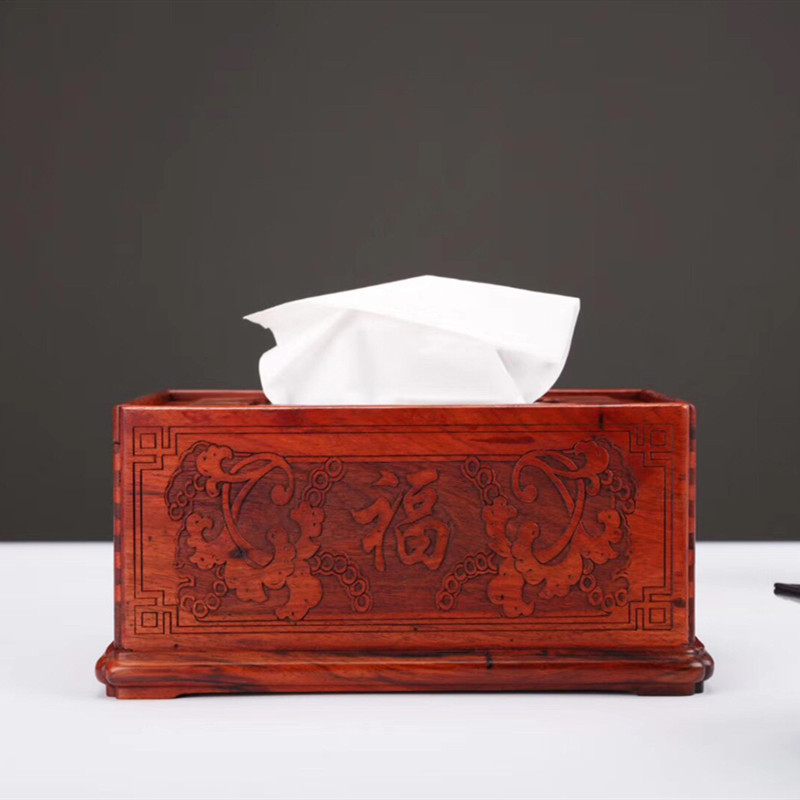 质枝红木酸中式复古餐巾纸巾盒子客厅家用实木雕花抽纸盒