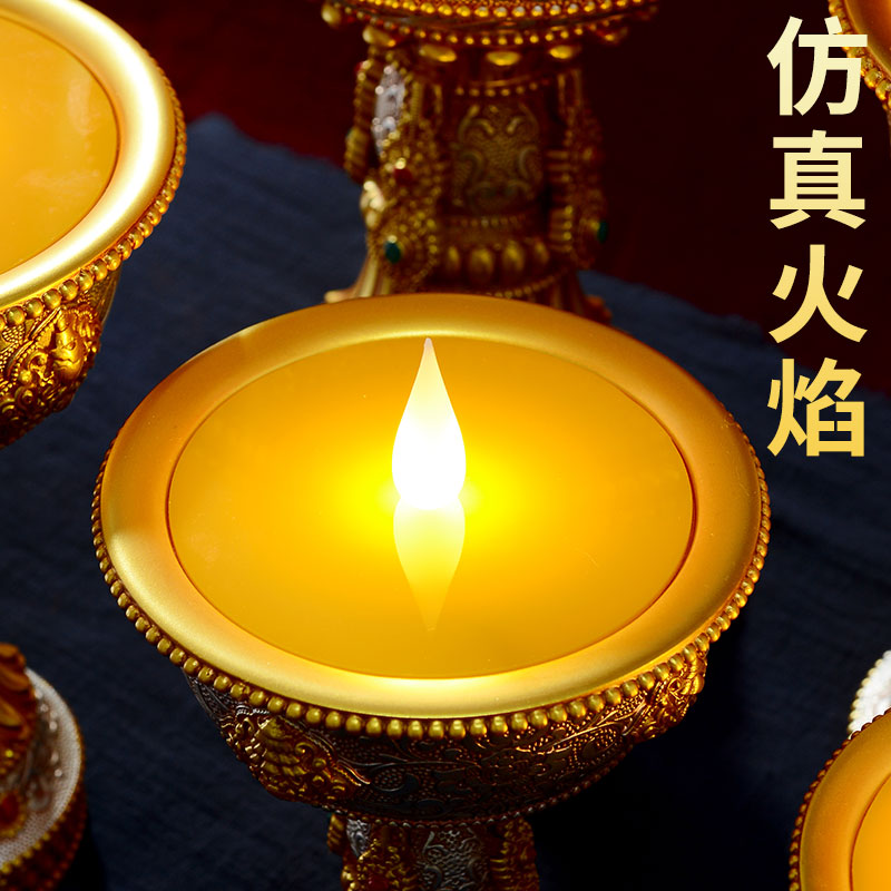 电子酥油灯彩绘充电LED长明灯室内家用八吉祥雕花烛台电蜡烛灯座