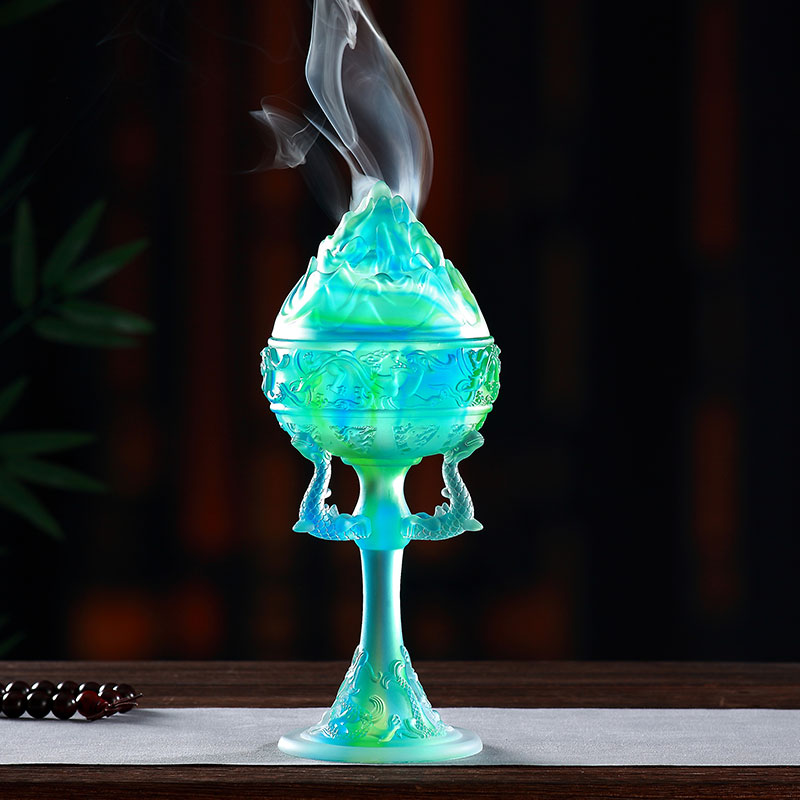 博山炉琉璃高脚熏香炉摆件客厅办公桌面前台摆放盘香香篆散香器