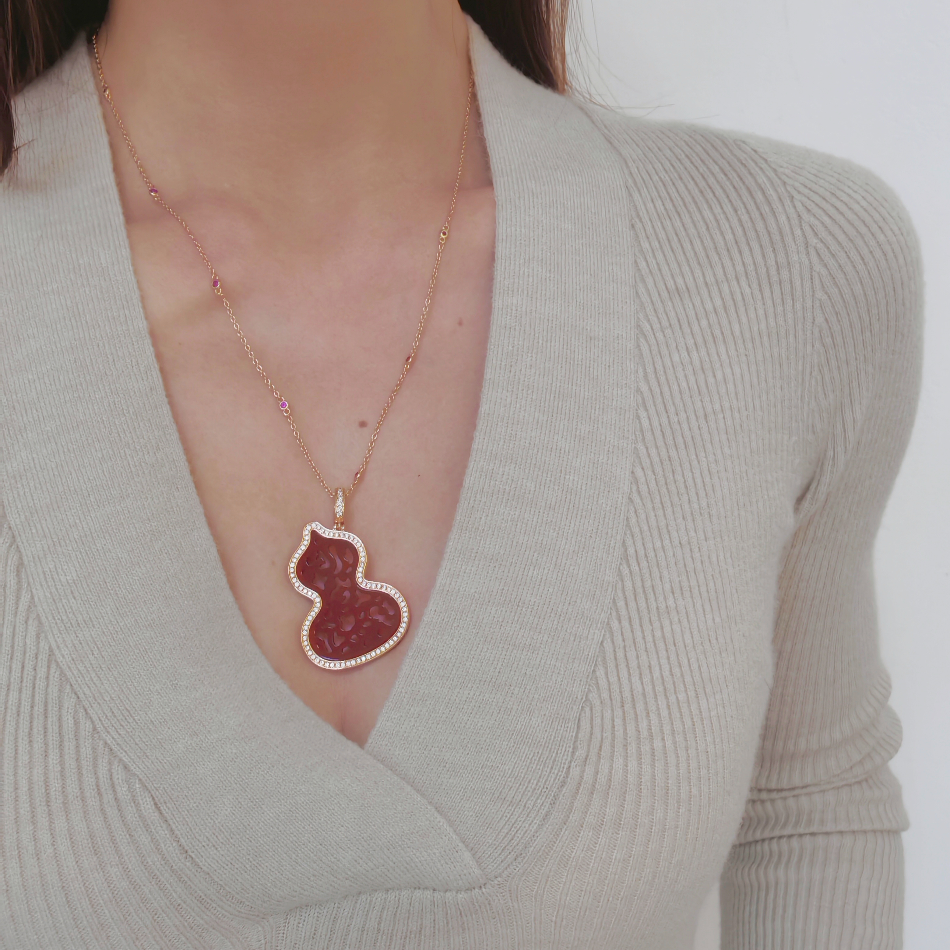 新年圣诞大号夸张红色葫芦长款项链毛衣链镂空国风复古高品质女