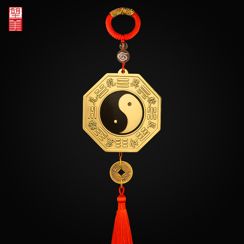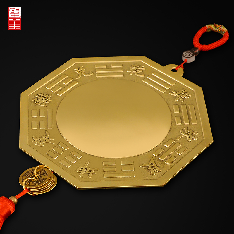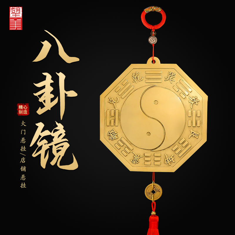 黄铜八卦镜凸镜门口窗户家用九宫太极阴阳凹面五帝钱挂门大铜镜子