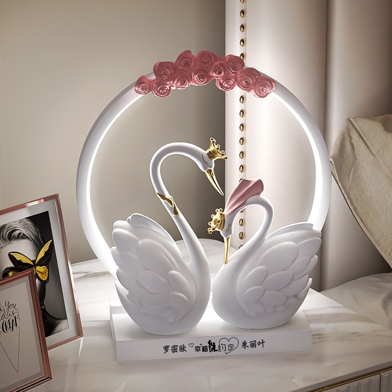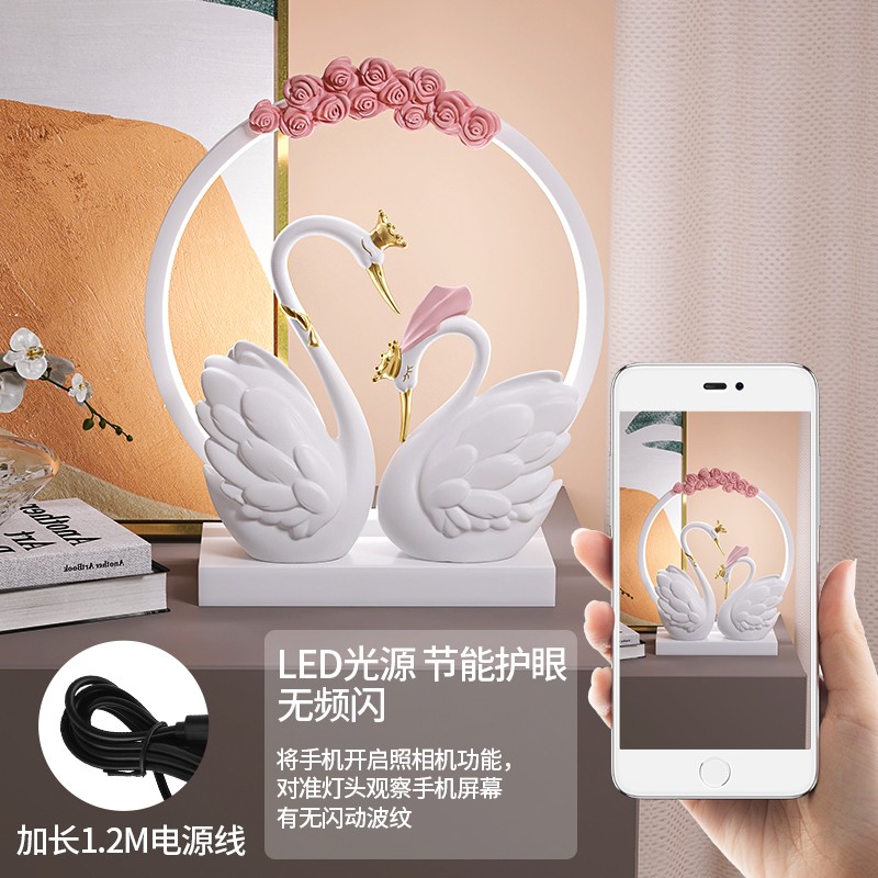 结婚新婚礼物实用送闺蜜新人北欧天鹅摆件一对卧室床头柜台灯夜灯