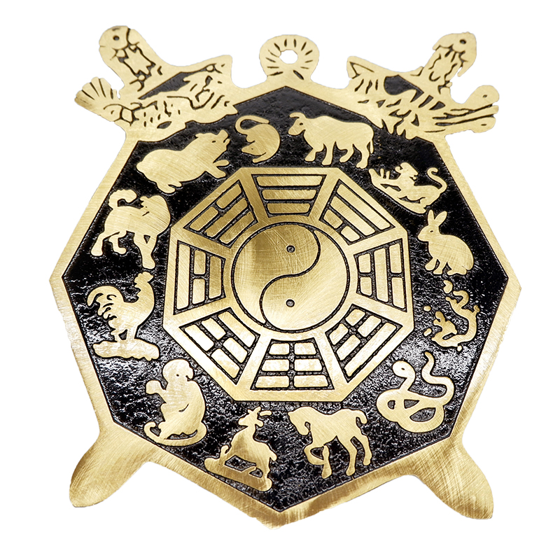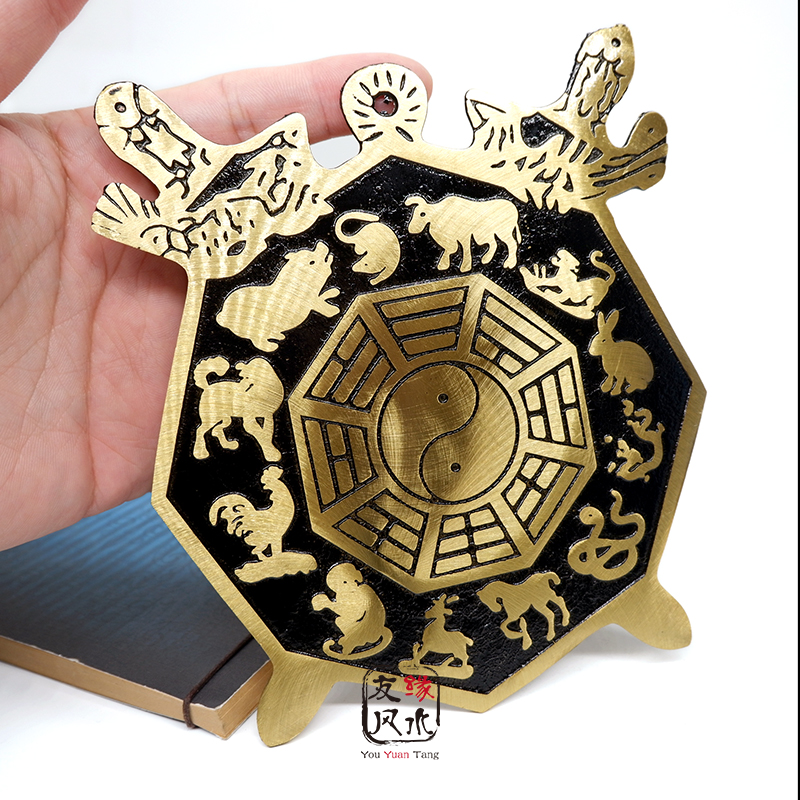 黄铜十二生肖八卦镜铜阴阳镜太极镜双宝剑风水摆件平安门对门挂件