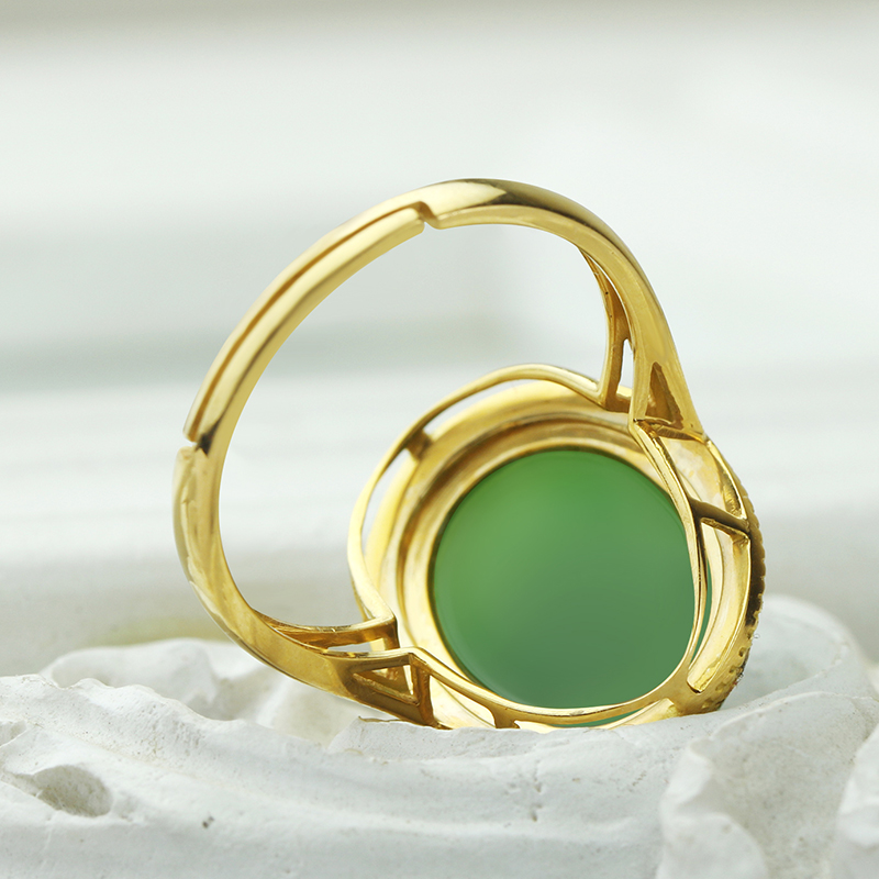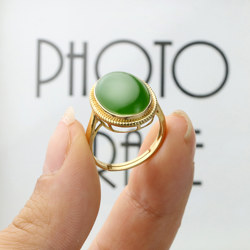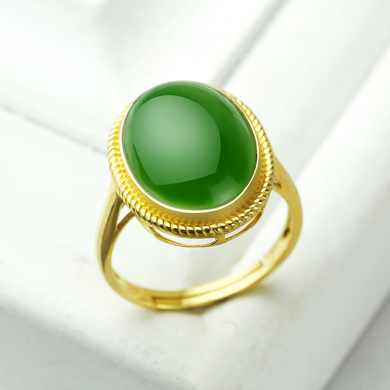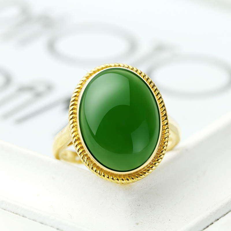 念玉珠宝18K黄金镶玉婚戒男女款天然和田玉碧玉戒指菠菜绿带证书