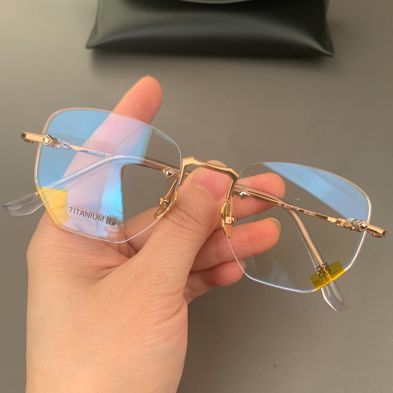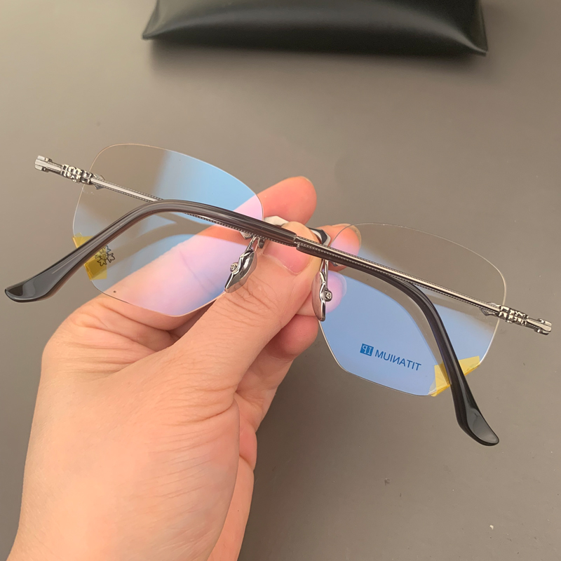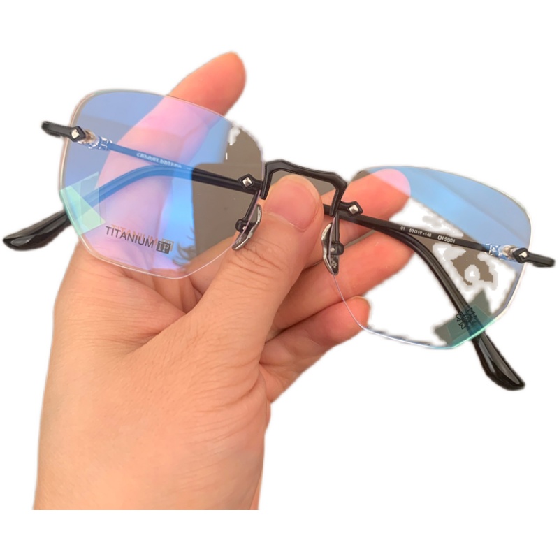 麦克心罗心眼镜框架纯钛超轻无框复古多边形男女打孔框近视平光镜