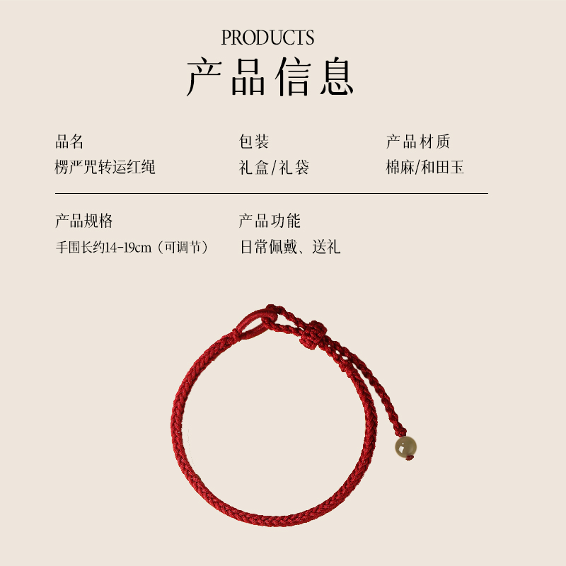 遇见普陀山红绳手链女款情侣和田玉转运珠本命年楞严咒红绳护身男