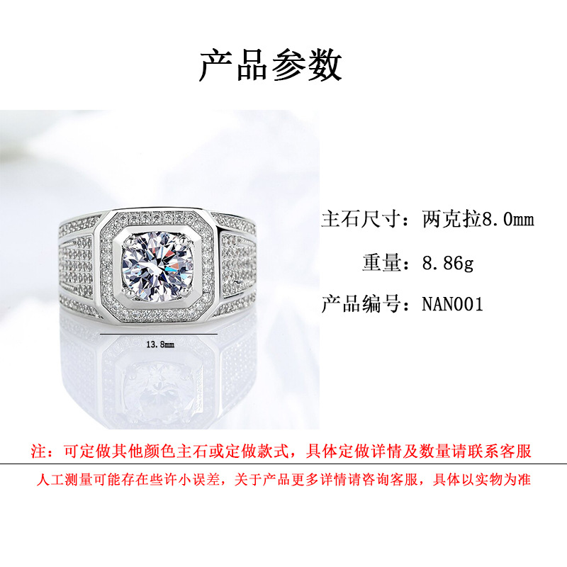 经典高碳钻高仿真男士钻戒仿莫 桑 石镀白金霸气十足结婚戒指
