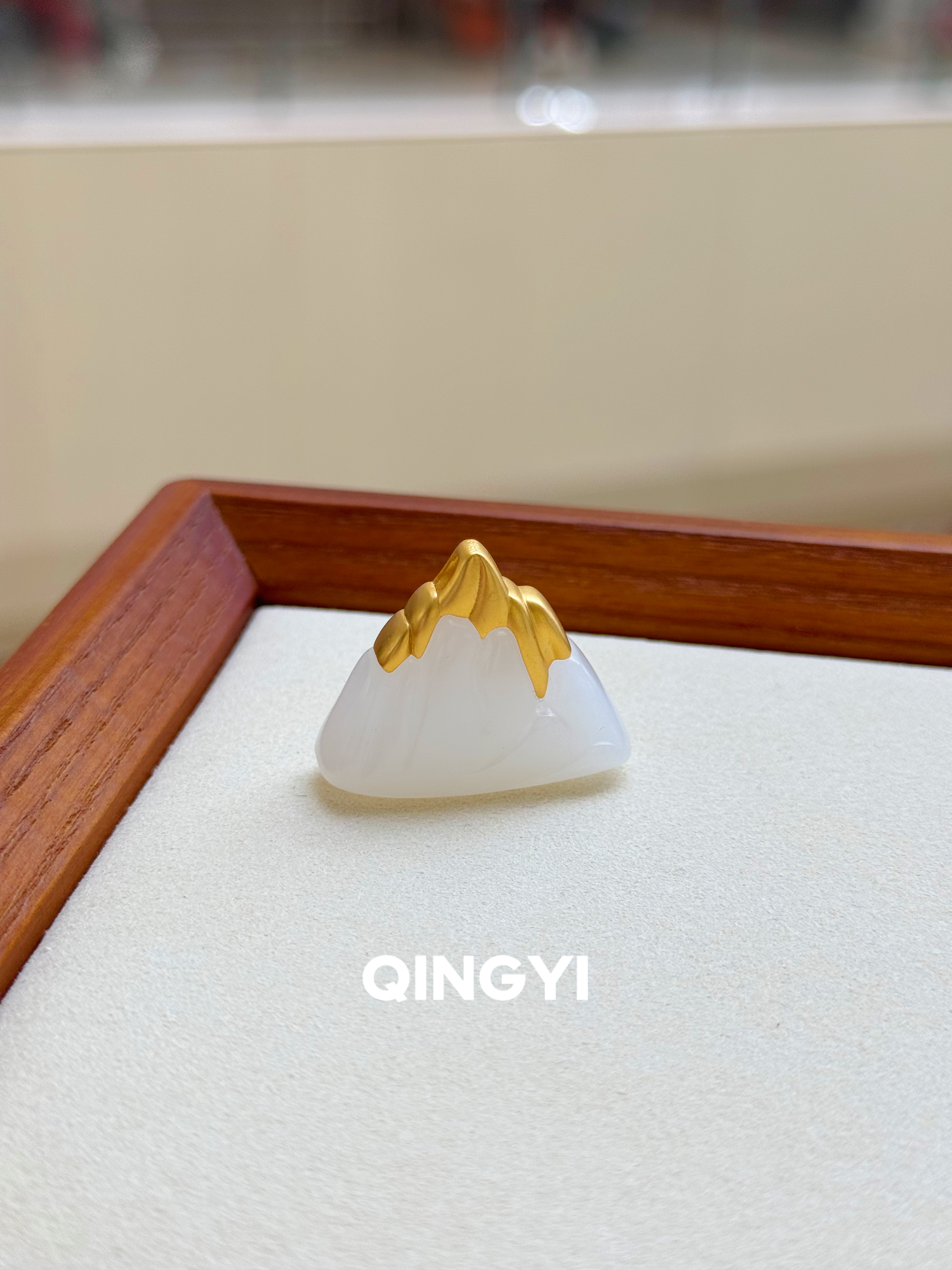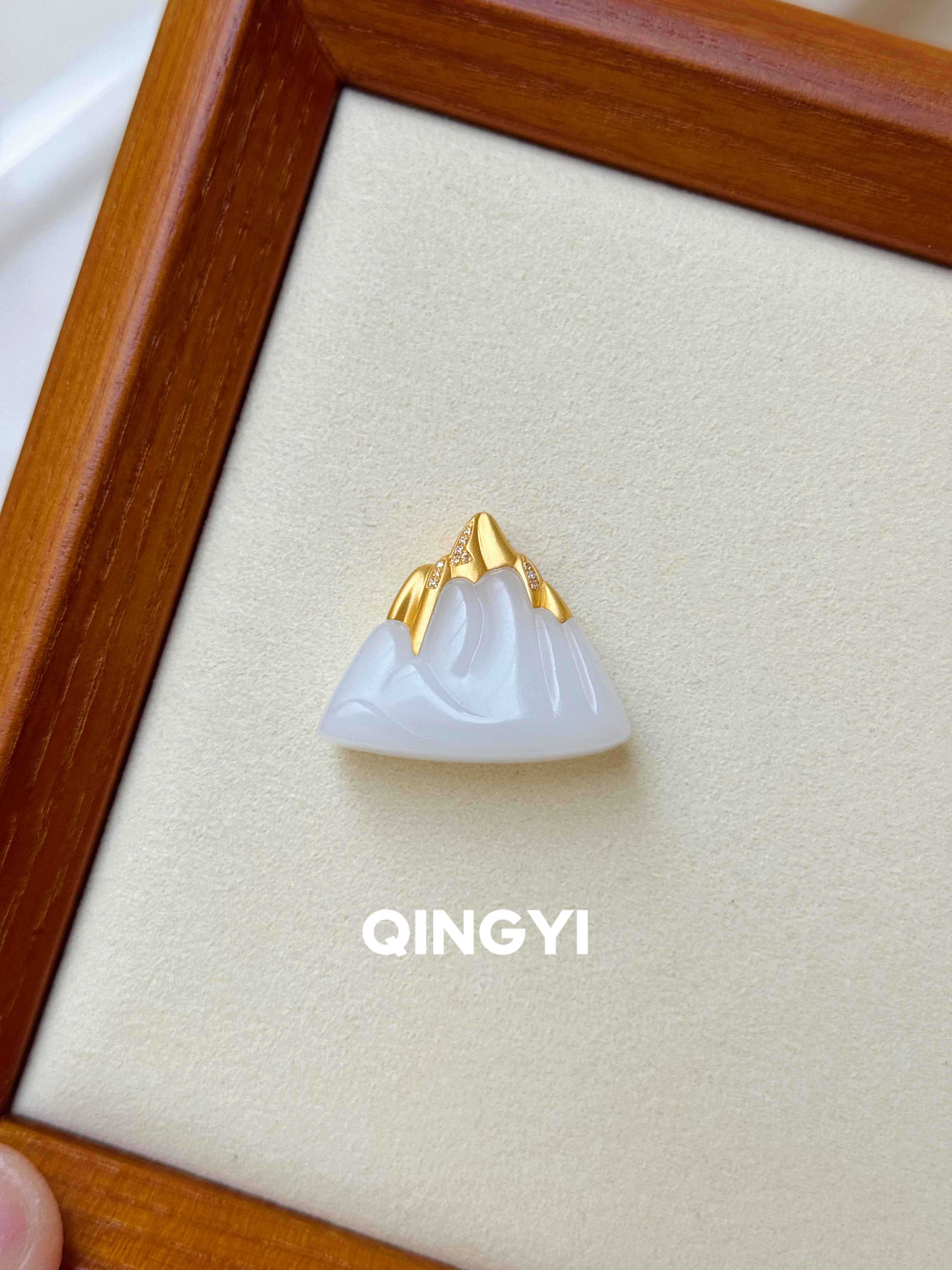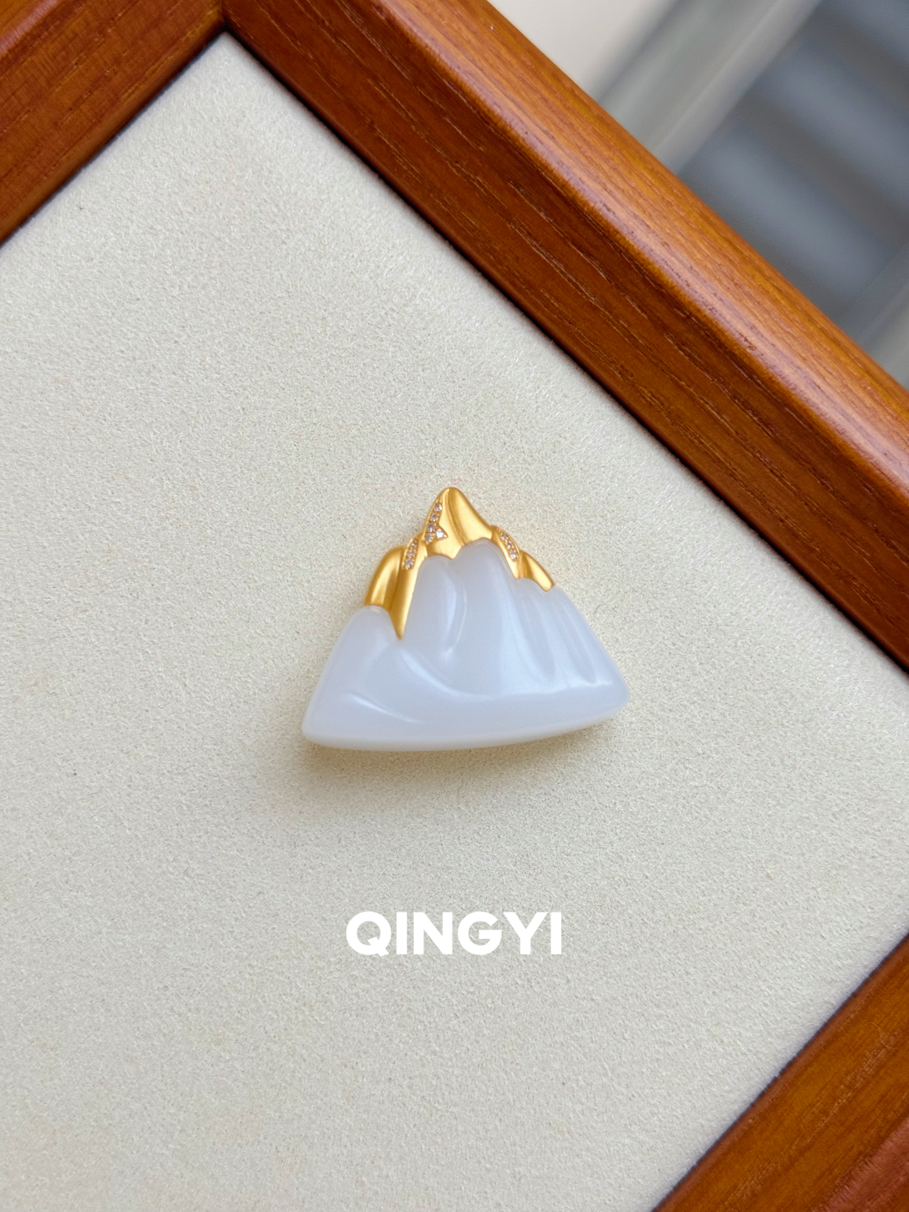 18k金镶天然正品新疆和田玉白玉山峰吊坠手工雕刻金山玉石挂件
