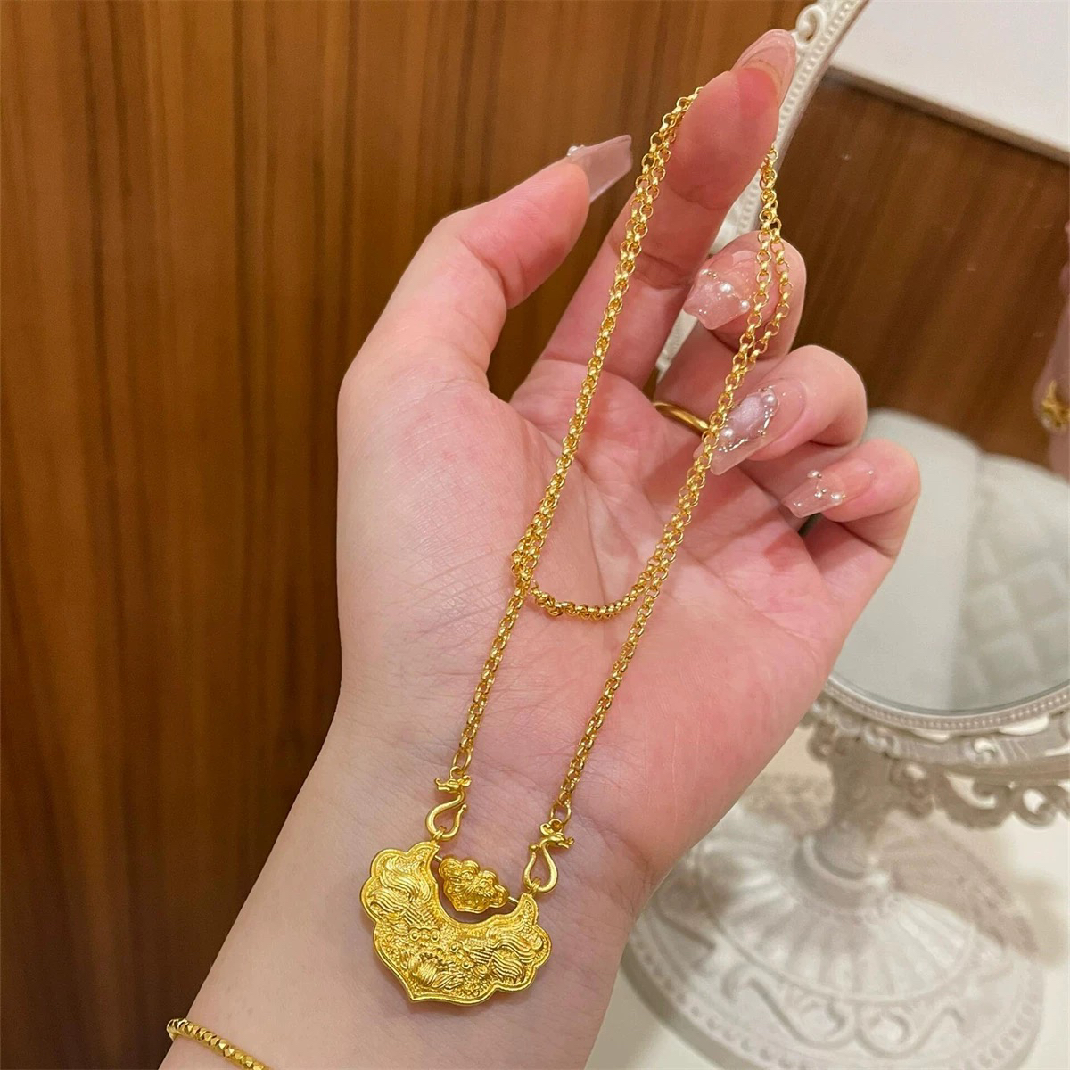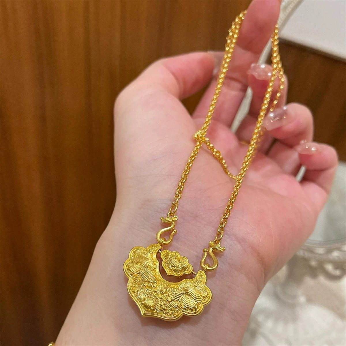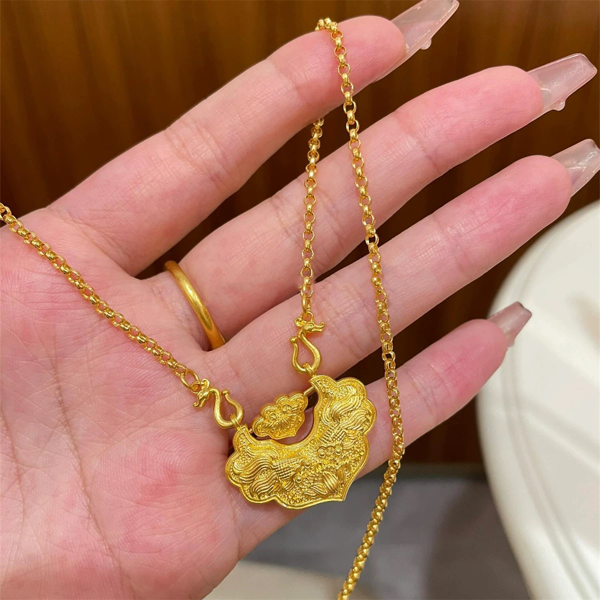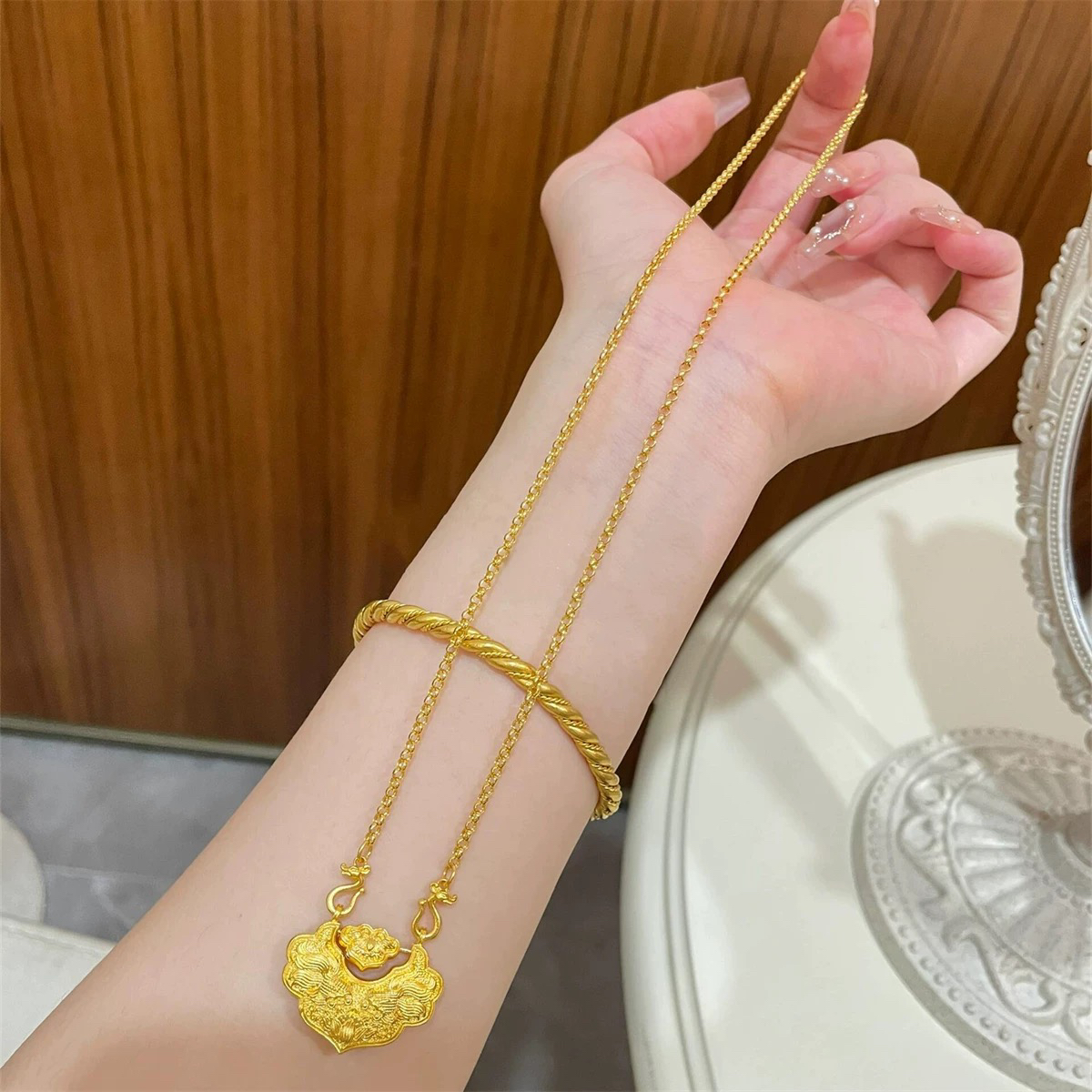 金包银古法錾刻双鱼锦鲤锁包项链女国风长命锁百搭毛衣链