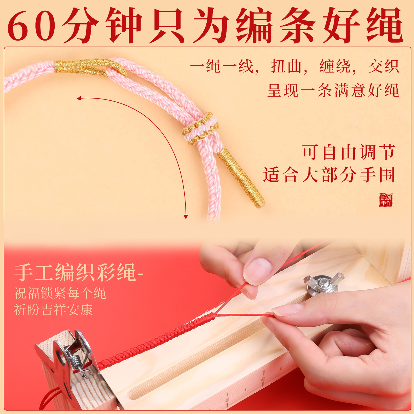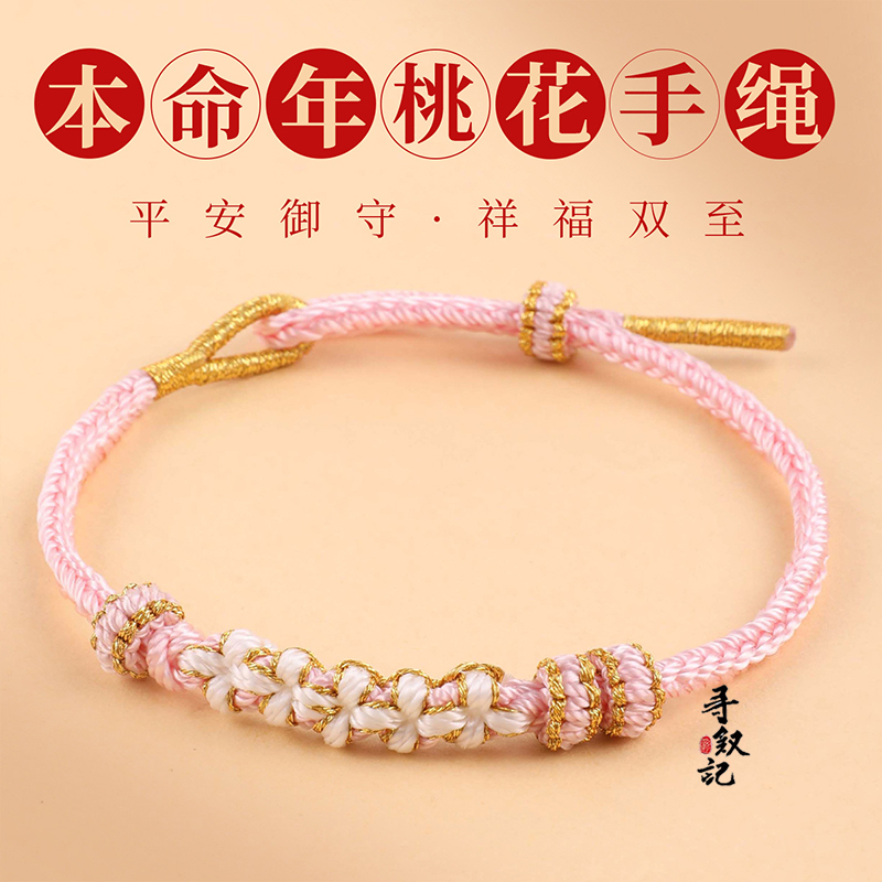 岑桃花结编绳手绳穿黄金转运珠红绳素绳粉色手饰马年本命年手链女