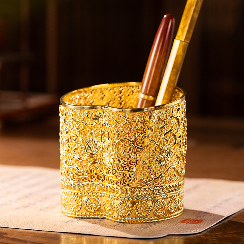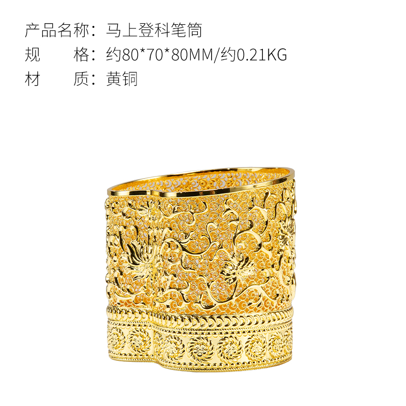 朱炳仁铜马上登科笔筒花丝马蹄型设计感收纳装饰摆件轻奢