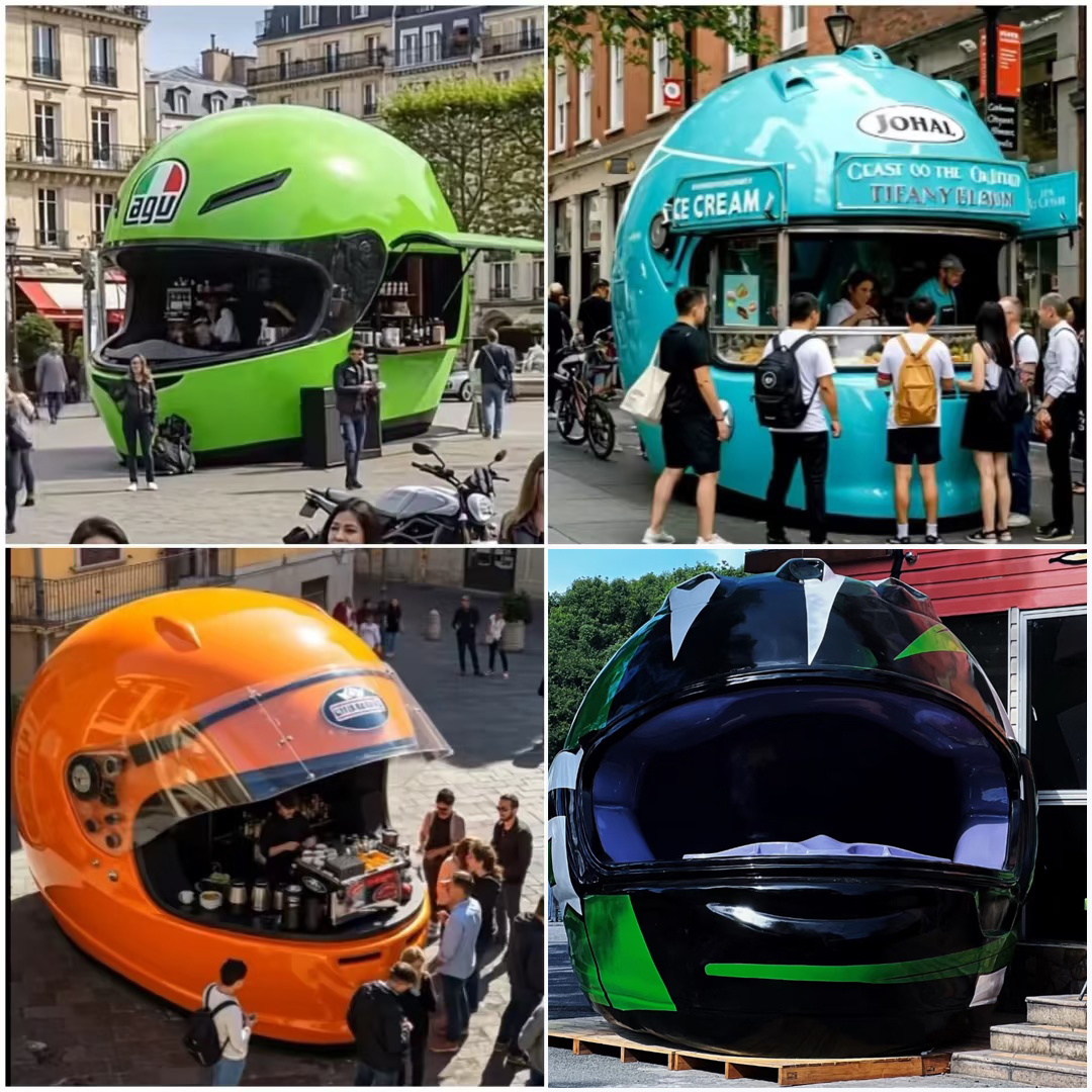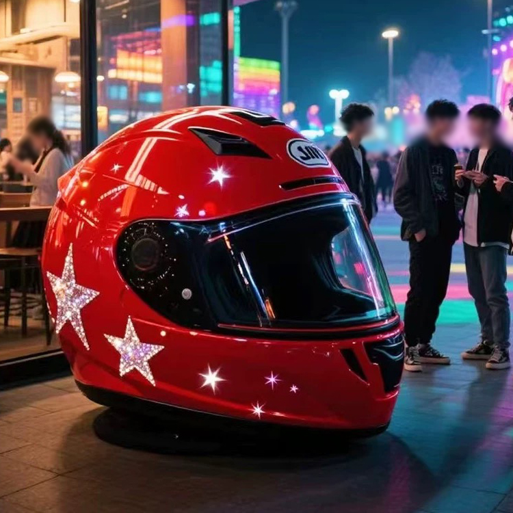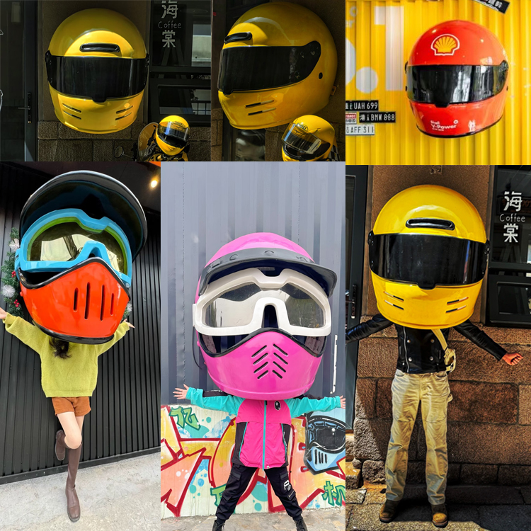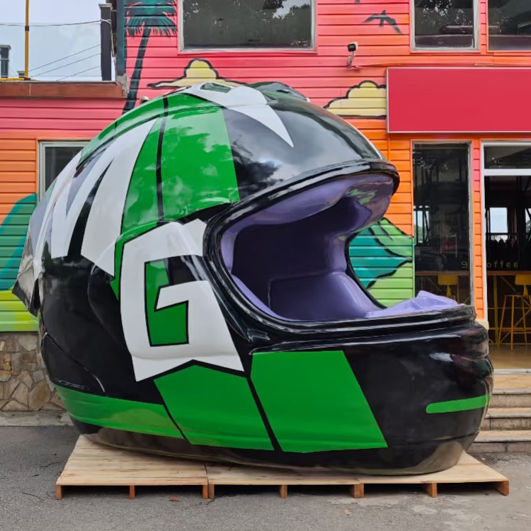 玻璃钢雕塑定制头盔机车店户外大型立体门头商场美陈咖啡屋大头盔