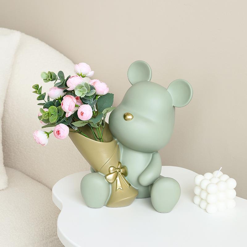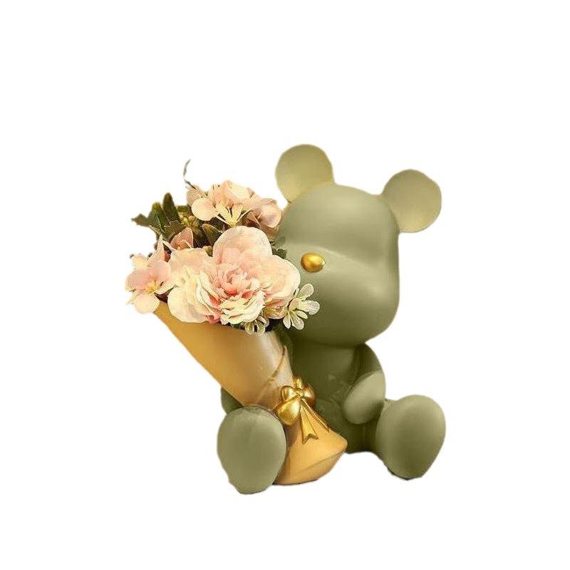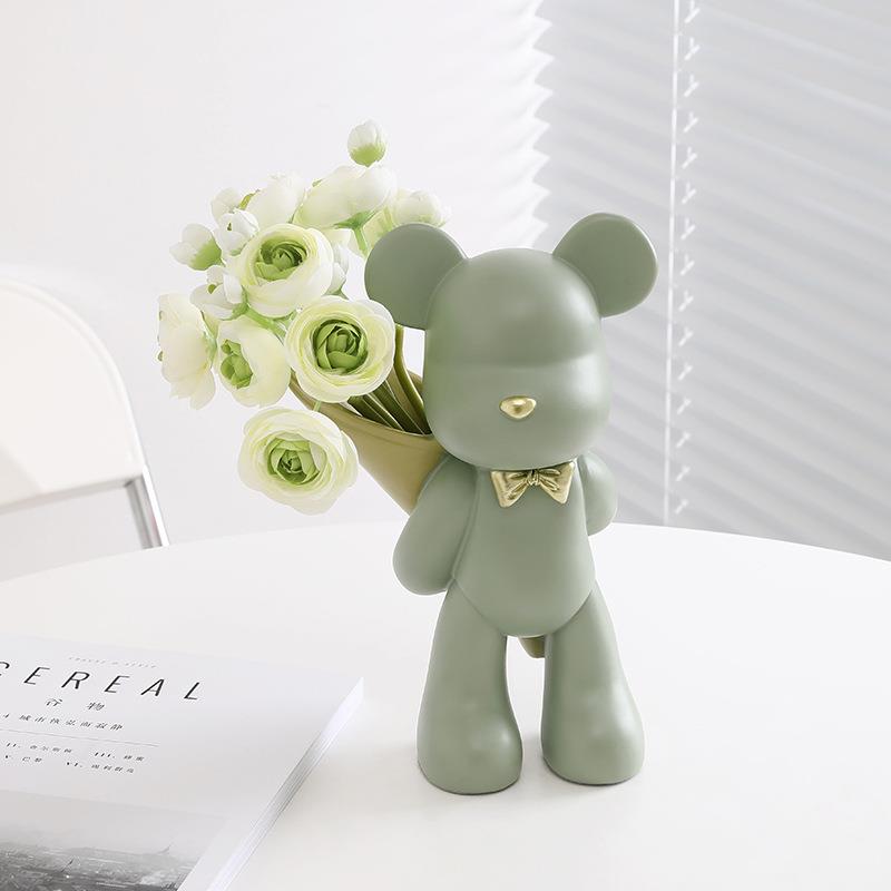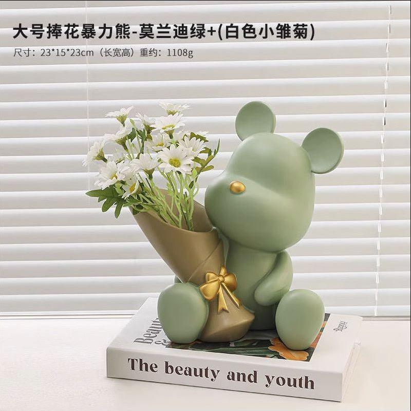 创意暴力熊摆件客厅玄关卧室桌面假花插花捧花家居电视柜装饰品小