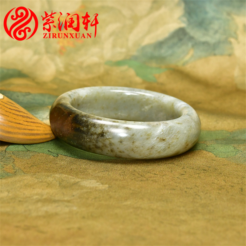 紫润轩新疆和田玉籽料手镯糖水草沁聚红油皮亚光61MM复古传家级