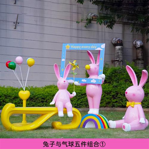 户外卡通兔子座椅玻璃钢雕塑商场店铺幼儿园美陈网红打卡拍照摆件