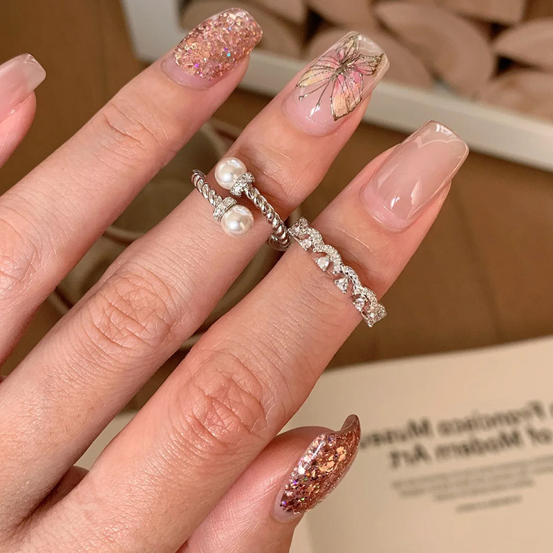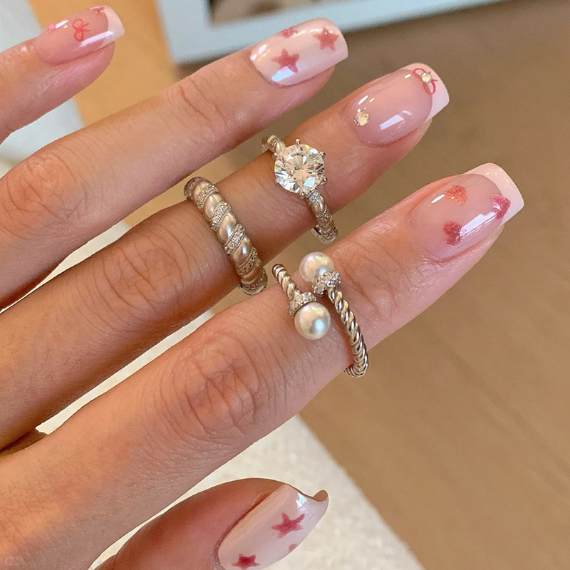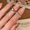 2025新款中古拉丝锆石珍珠戒指女开口素圈百搭叠戴小众情侣对戒