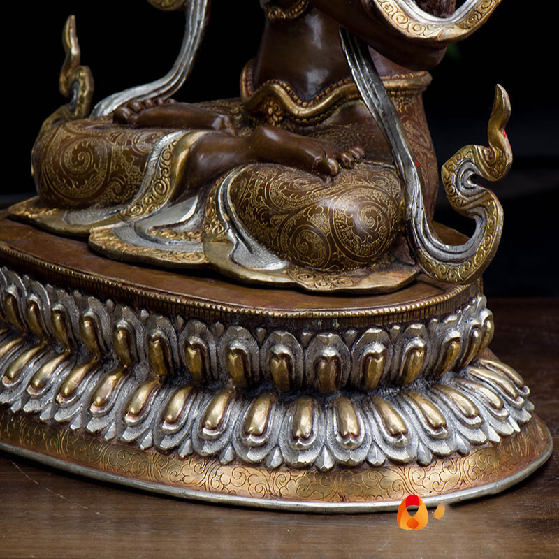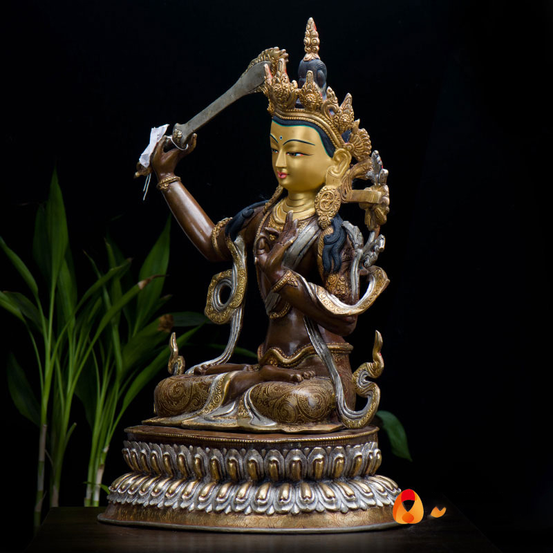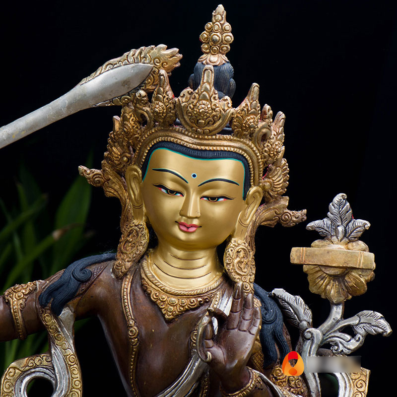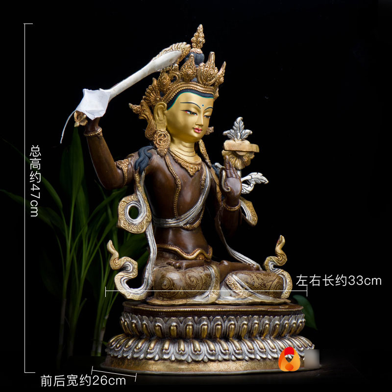 文殊菩萨铜像现代铜像尼泊尔西藏15寸紫铜鎏金鎏银居家摆件