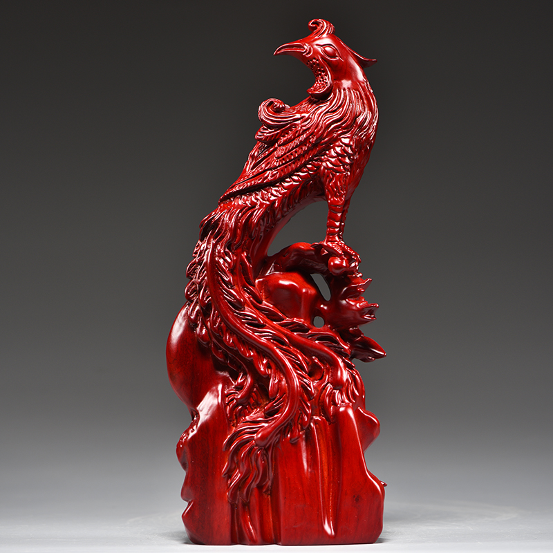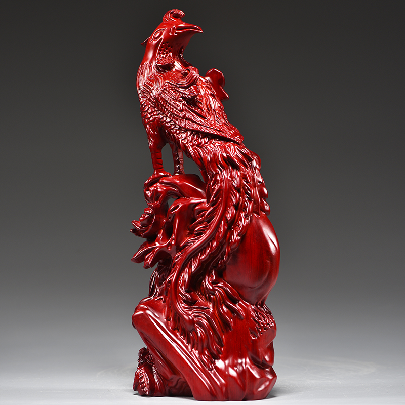 红色实木质雕刻吉祥凤凰摆件红木家居客厅装饰工艺品新婚乔迁送礼