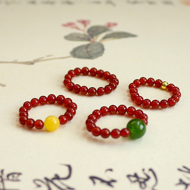 天然红玛瑙黄玉戒指女叠戴大码红色胖手指食指搭配黄金新中式手串