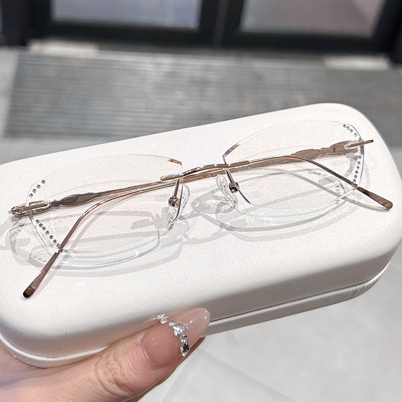 近视眼镜女防蓝光纯钛眼镜框无边框韩版钻石切边配有度数散光护目