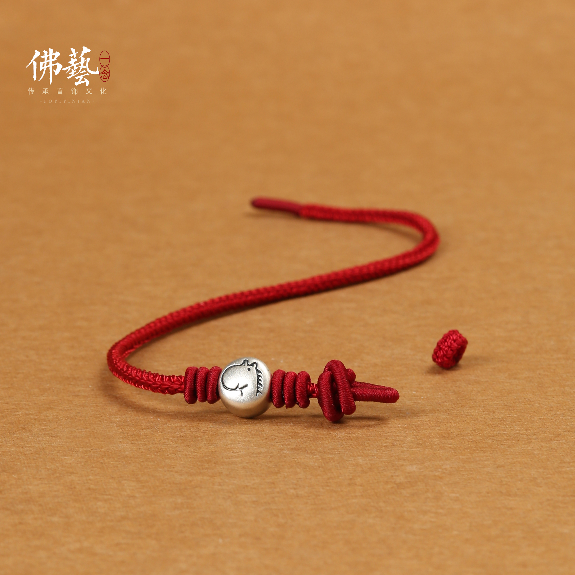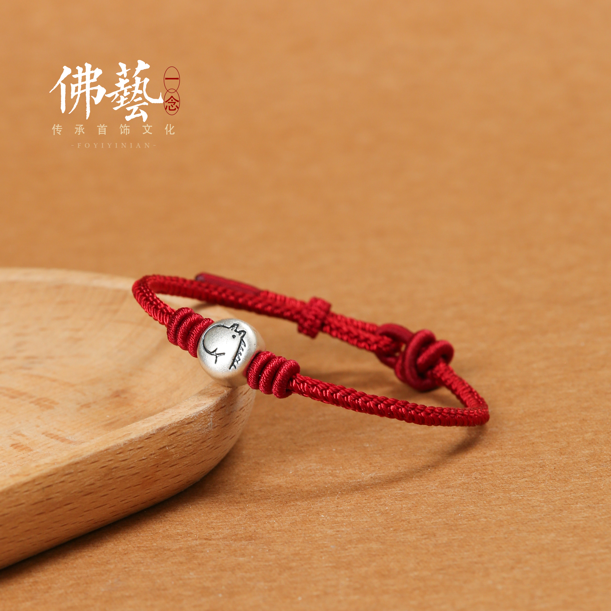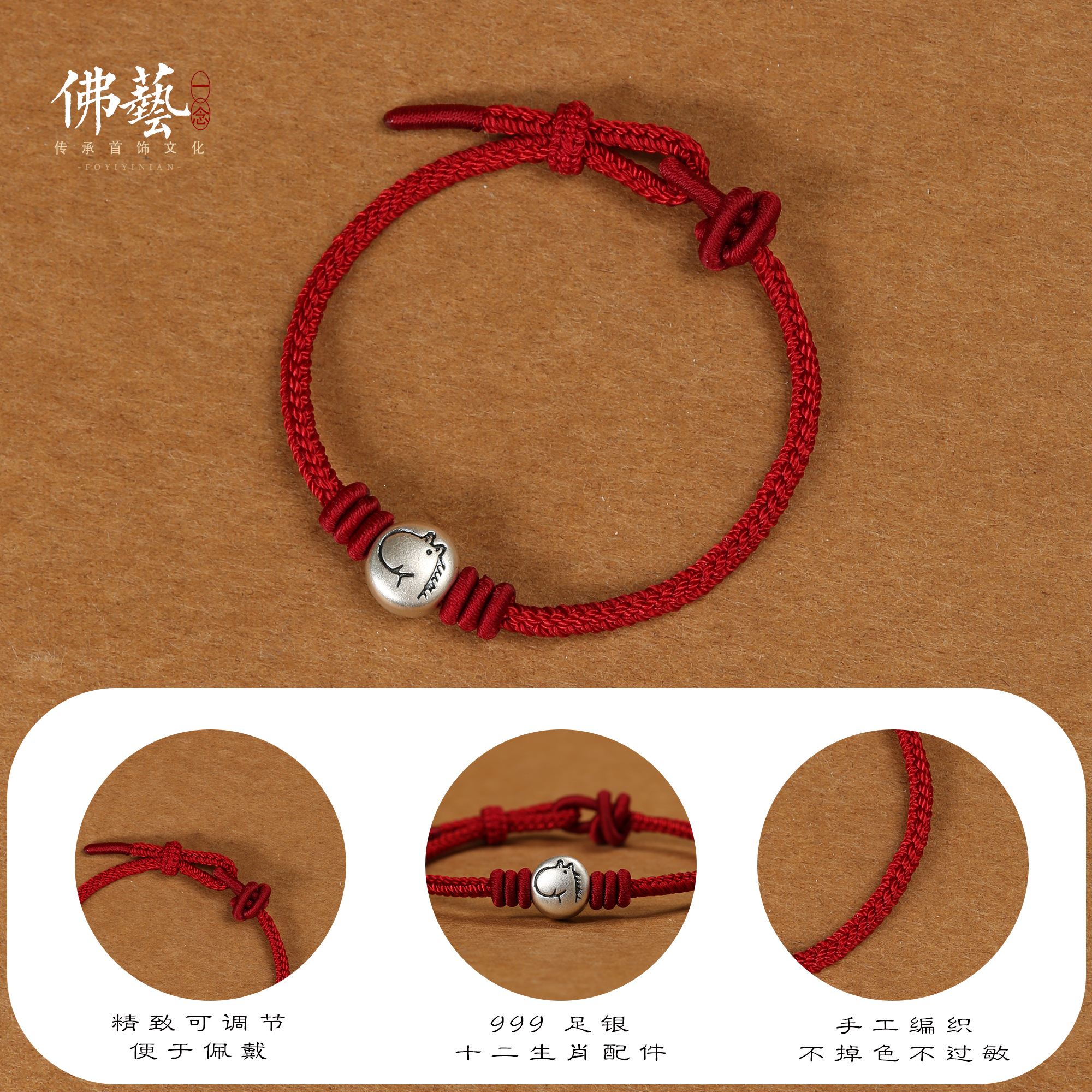 999足银十二生肖转运珠红绳手链女本命年属马男手绳新年编织礼物