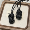 收藏级黑耀石貔貅吊坠银曜石瑞兽招财纳福国潮挂件情侣项链编织绳