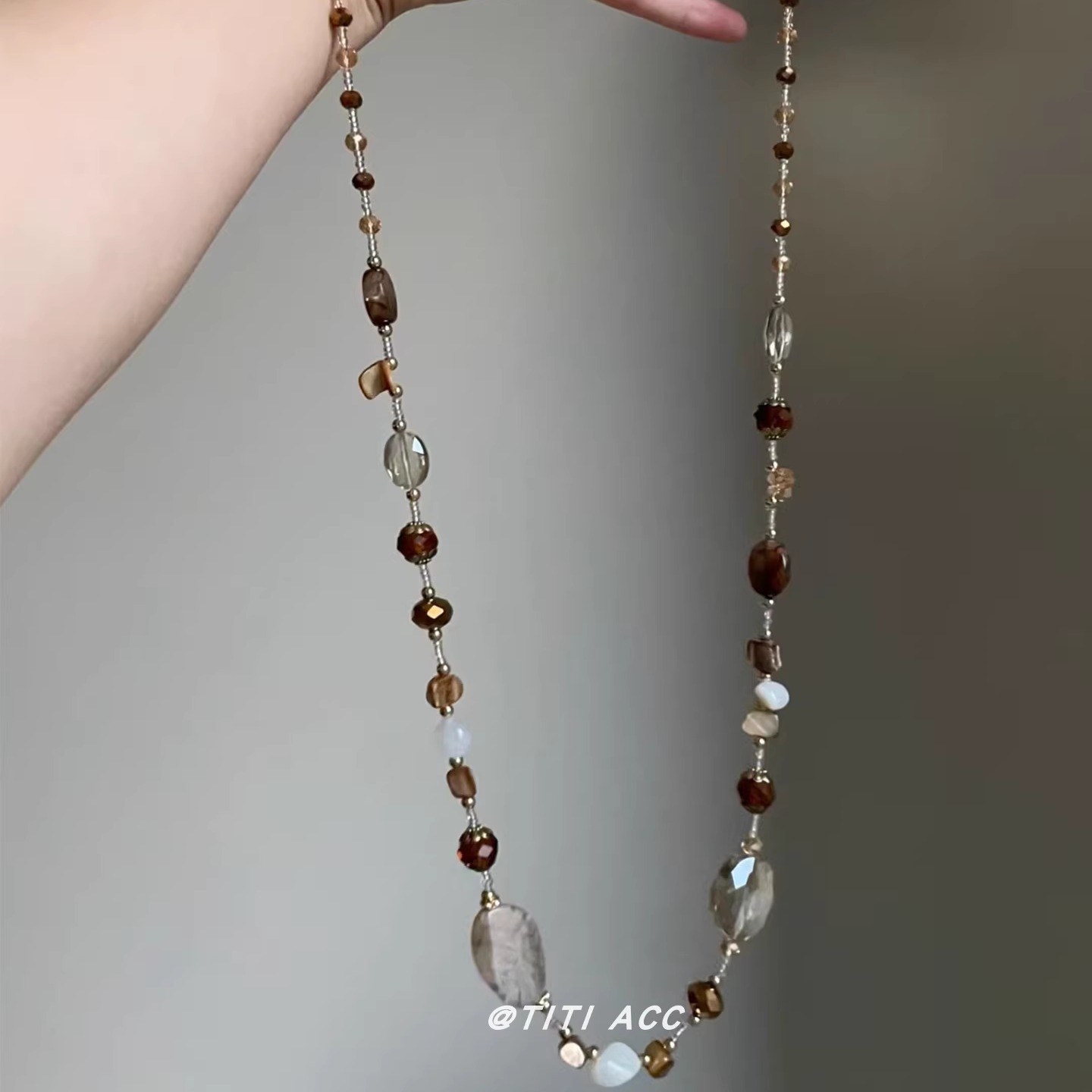 老钱风小众虎眼石珍珠项链时尚简约爆款毛衣链个性设计感串珠配饰