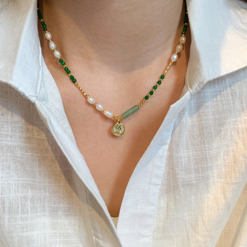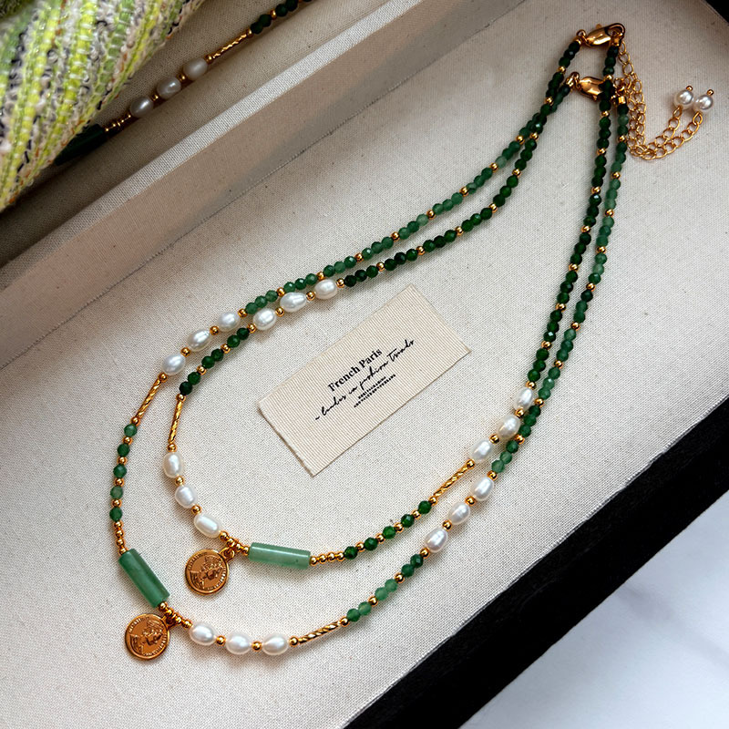 天然淡水珍珠绿色石头串珠项链配饰女高级感轻奢小众2025新款配饰