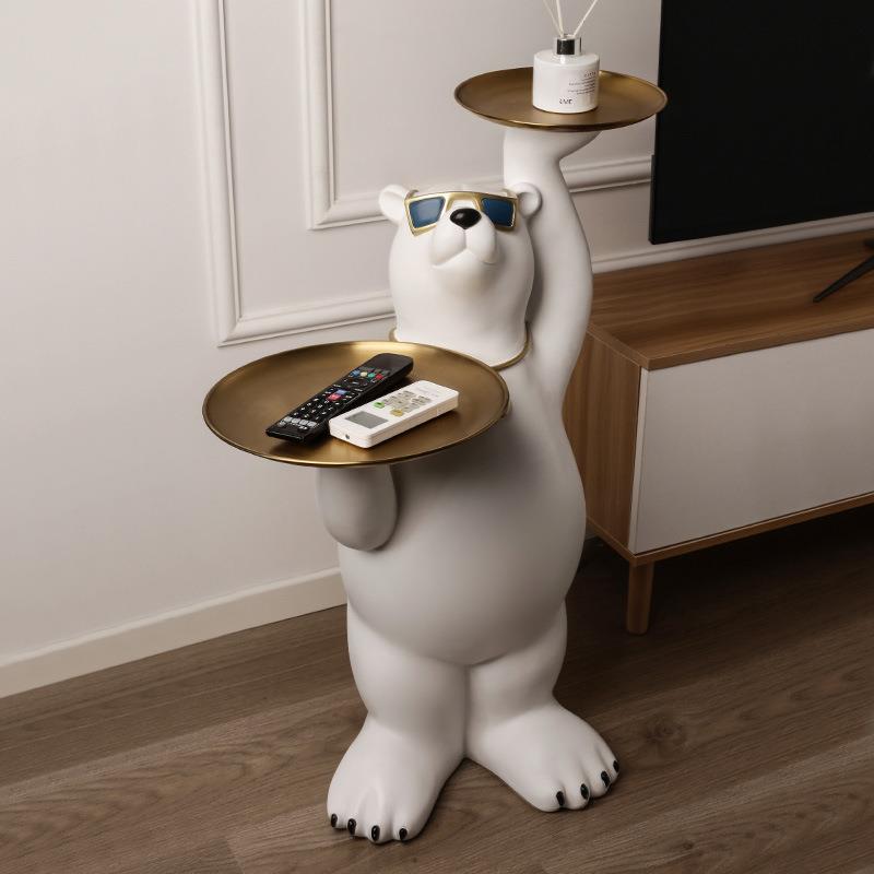 创意大型北极熊落地摆件客厅沙发旁托盘收纳家居装饰乔迁新居礼品