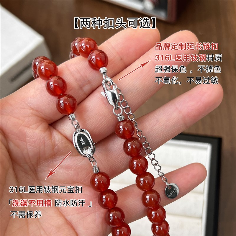 7A级天然红玛瑙项链女红色珠子串珠小众高级感锁骨链2024新款颈链