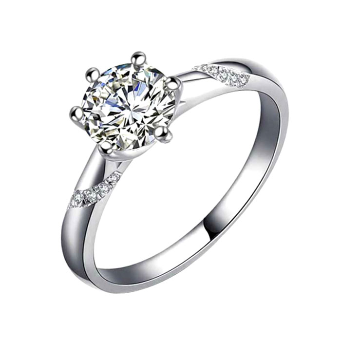 进口莫桑石PT950铂金戒指经典微镶花臂六爪钻戒碎钻1克拉女求婚戒