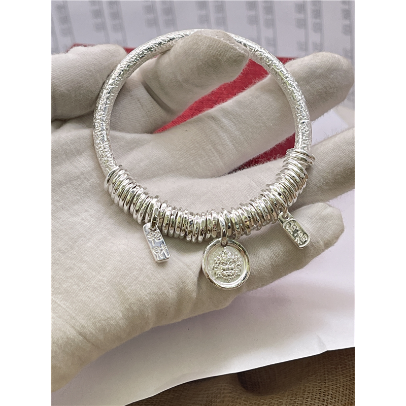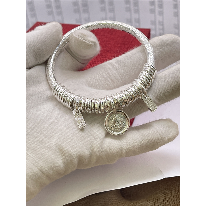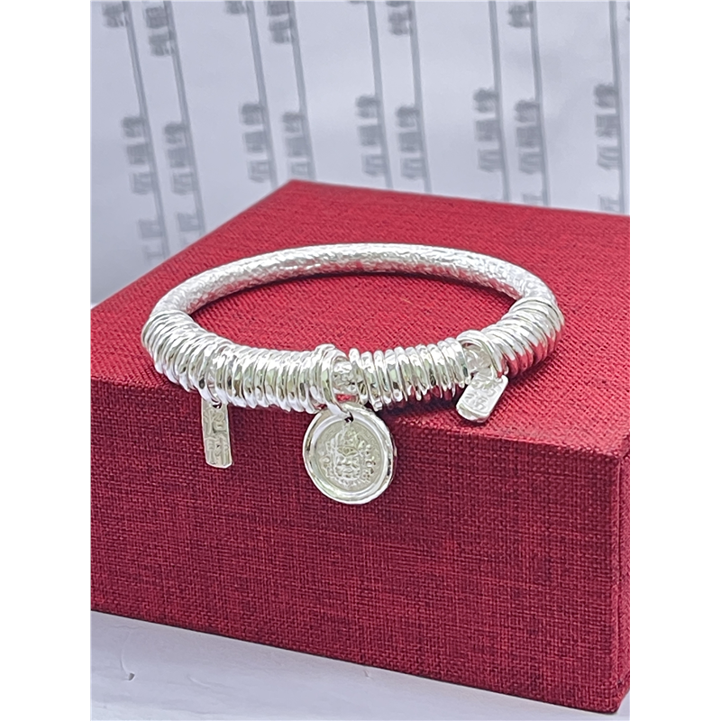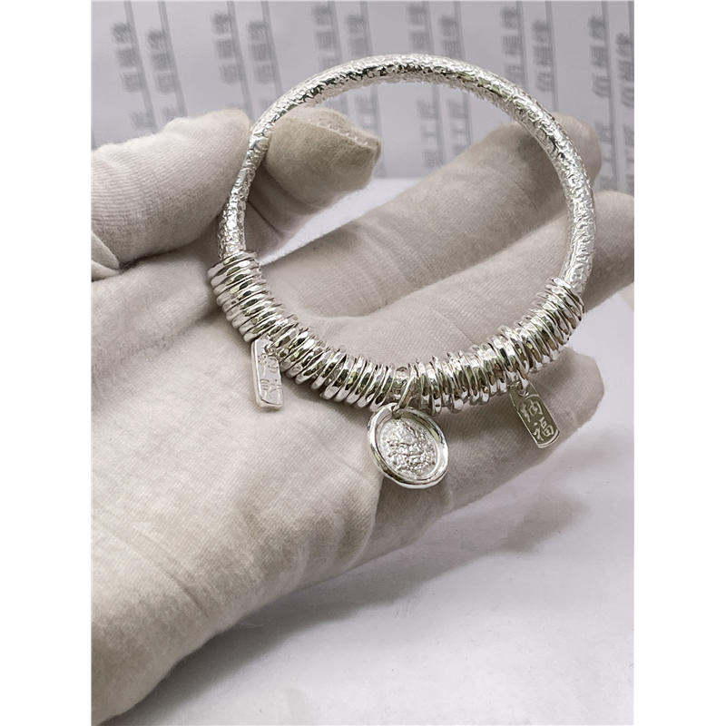 当前位置:首页>商品详情>足银999百搭设计钱串子纯手工复古盘缠手镯锤打纹式男女手串