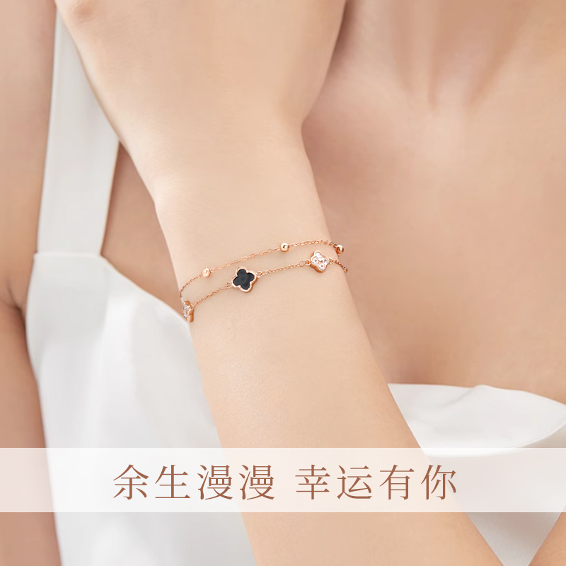 中国黄金珍尚银纯银四叶草手链女简约轻奢气质手饰送女友闺蜜老婆