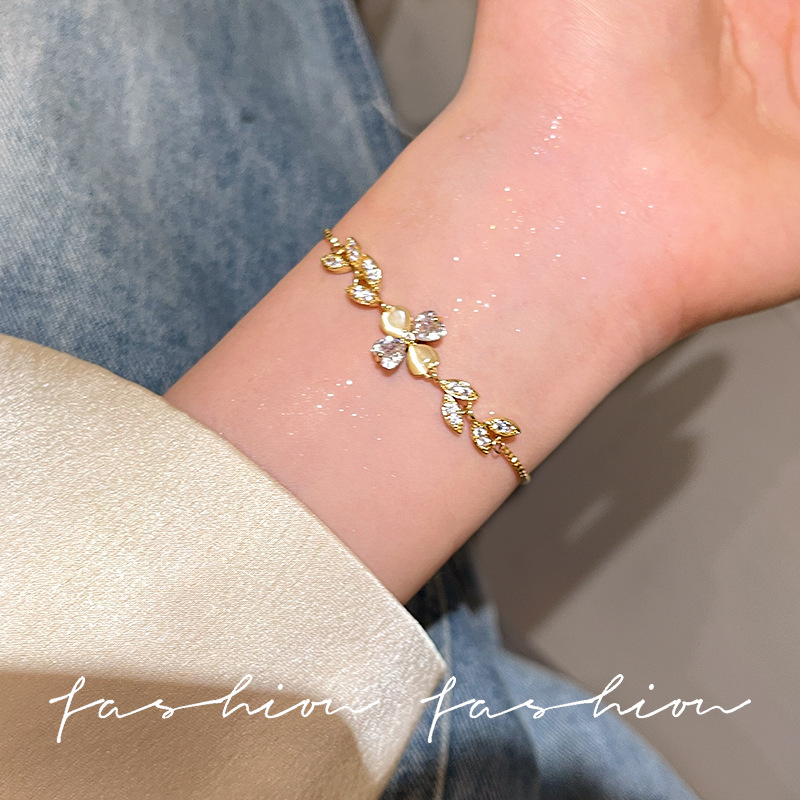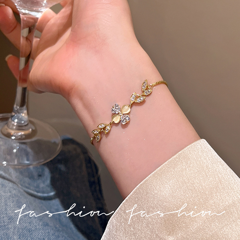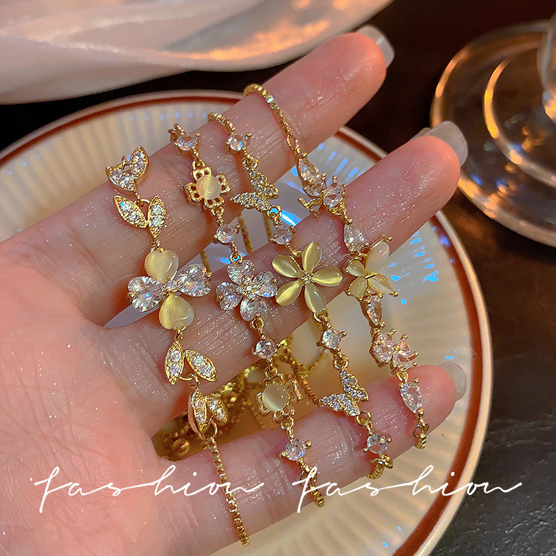 高级感小众花朵锆石手链女轻奢百搭ins气质手环猫眼石学生手饰品