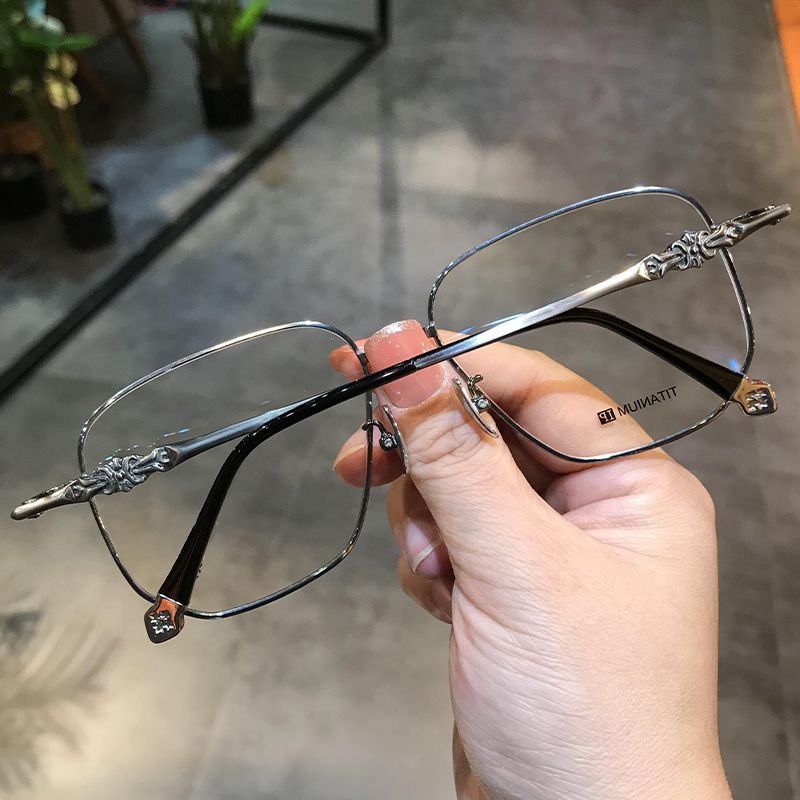 简丹萝心潮百搭眼镜框钛架超轻多边形个性金丝边眼镜架配近视平光