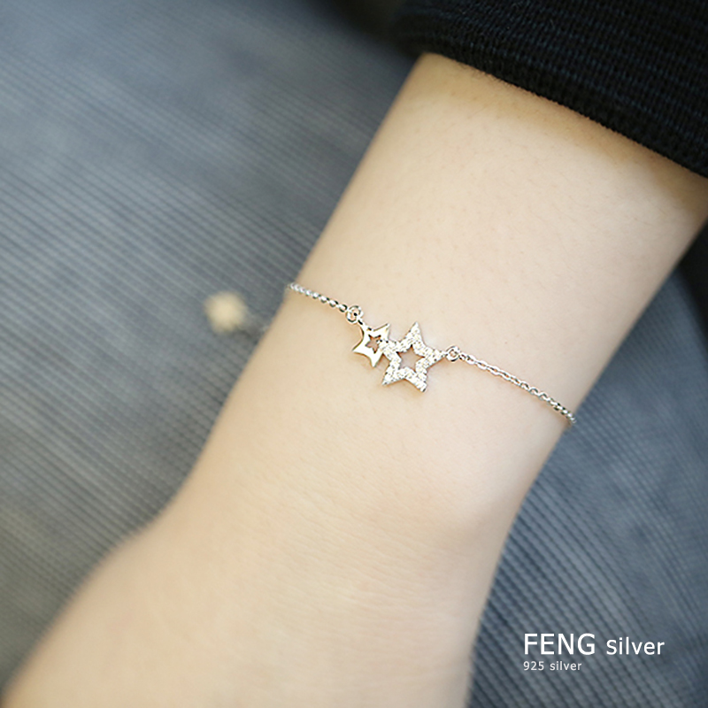 烽之银镶钻星星手链女生925纯银韩版五角星简约学生森系个性刻字