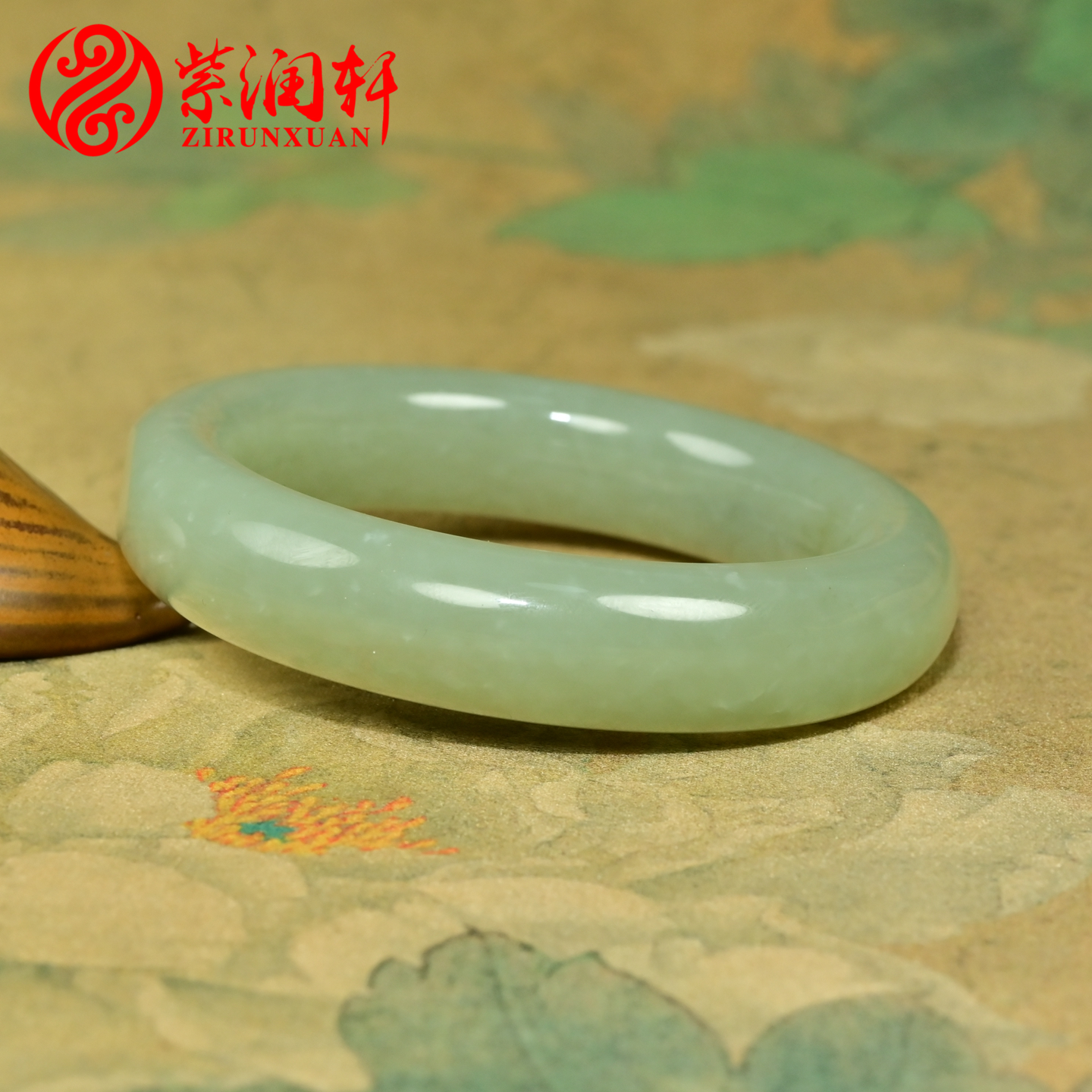紫润轩新疆和田玉青白玉籽料手镯肥厚条留皮玉镯57MM高油收藏级