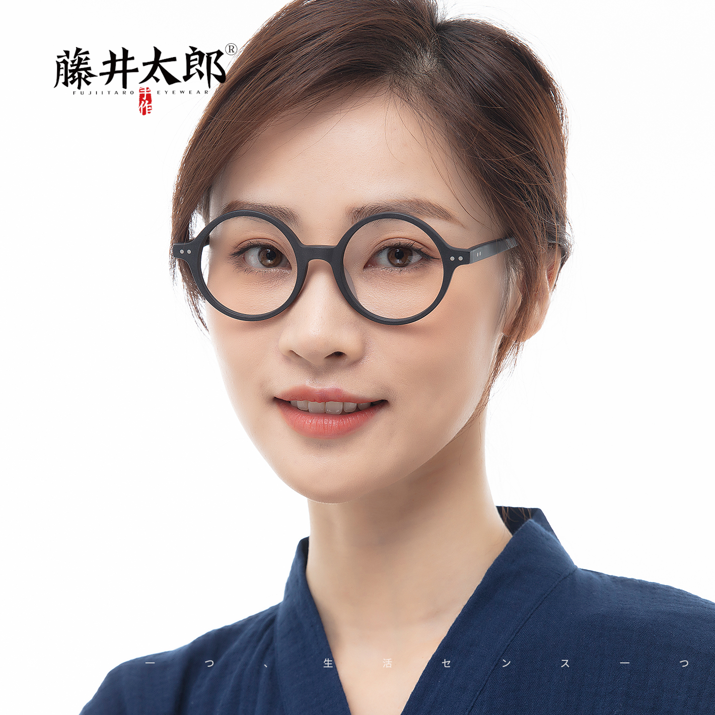 藤井太郎日系圆框眼镜架男复古板材大圆形眼镜框女黑框近视眼睛框