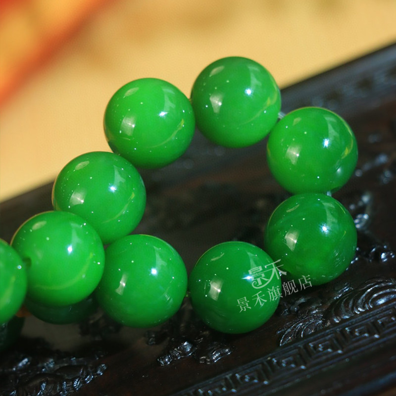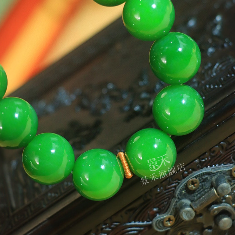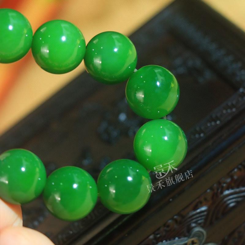 和田玉俄罗斯碧玉手串男碧绿圆珠串珠手链女玉石玉器文玩手把件16