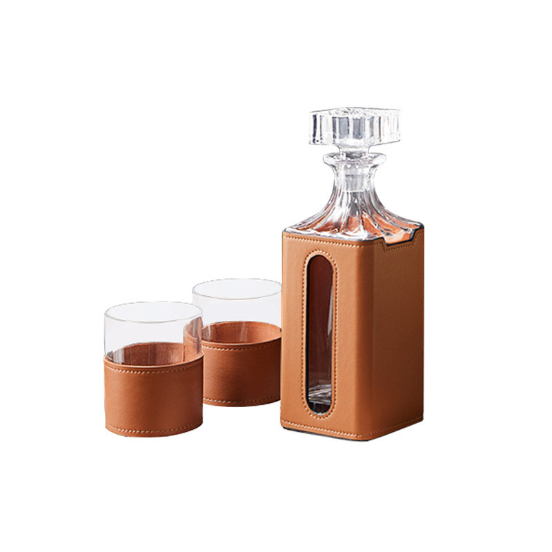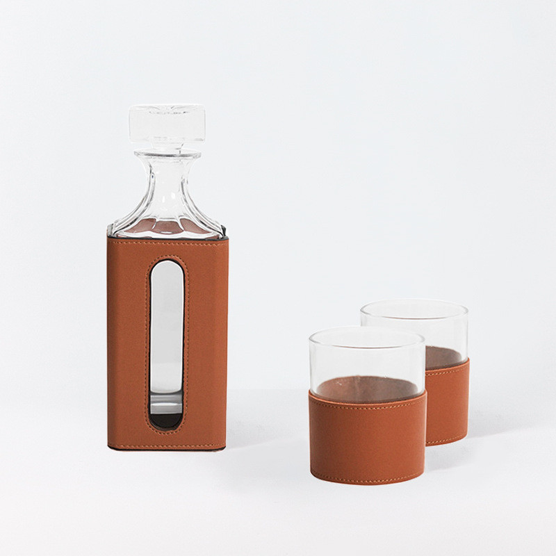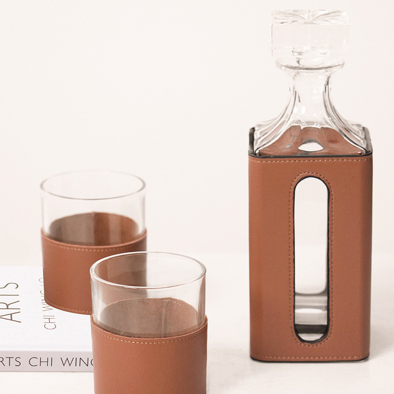 热销现代橙色皮革玻璃客厅套装酒具飘窗醒酒器装饰摆件餐桌茶几柜
