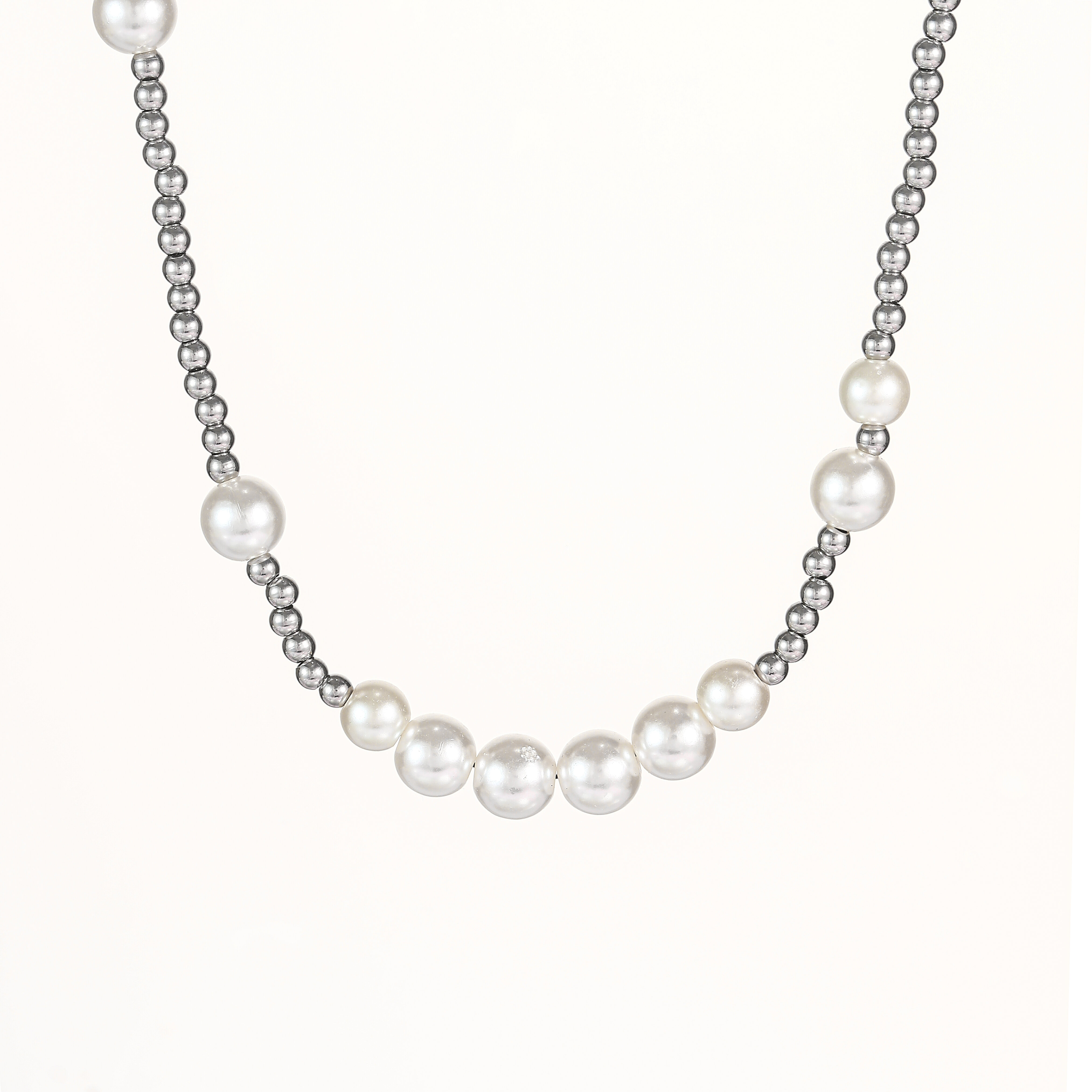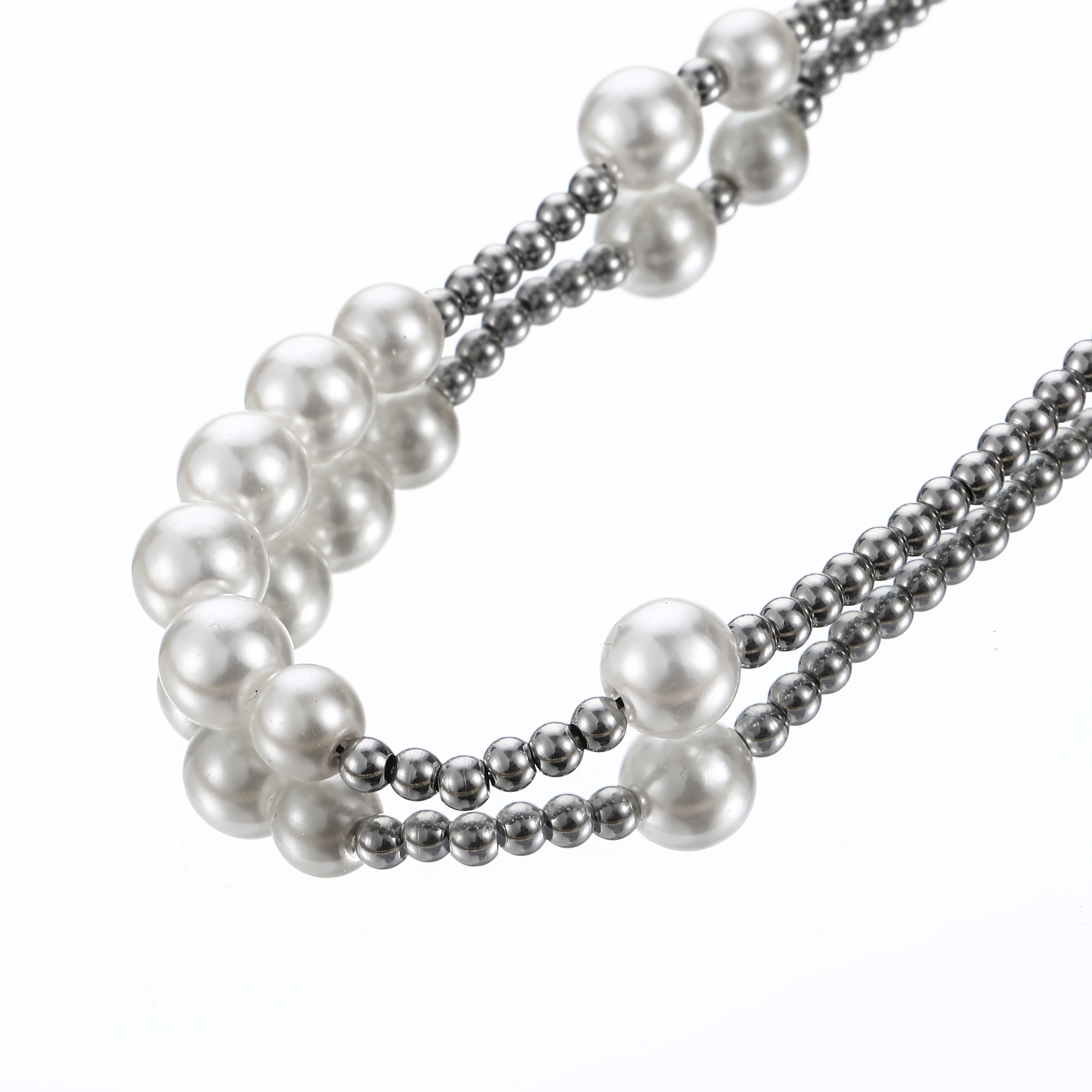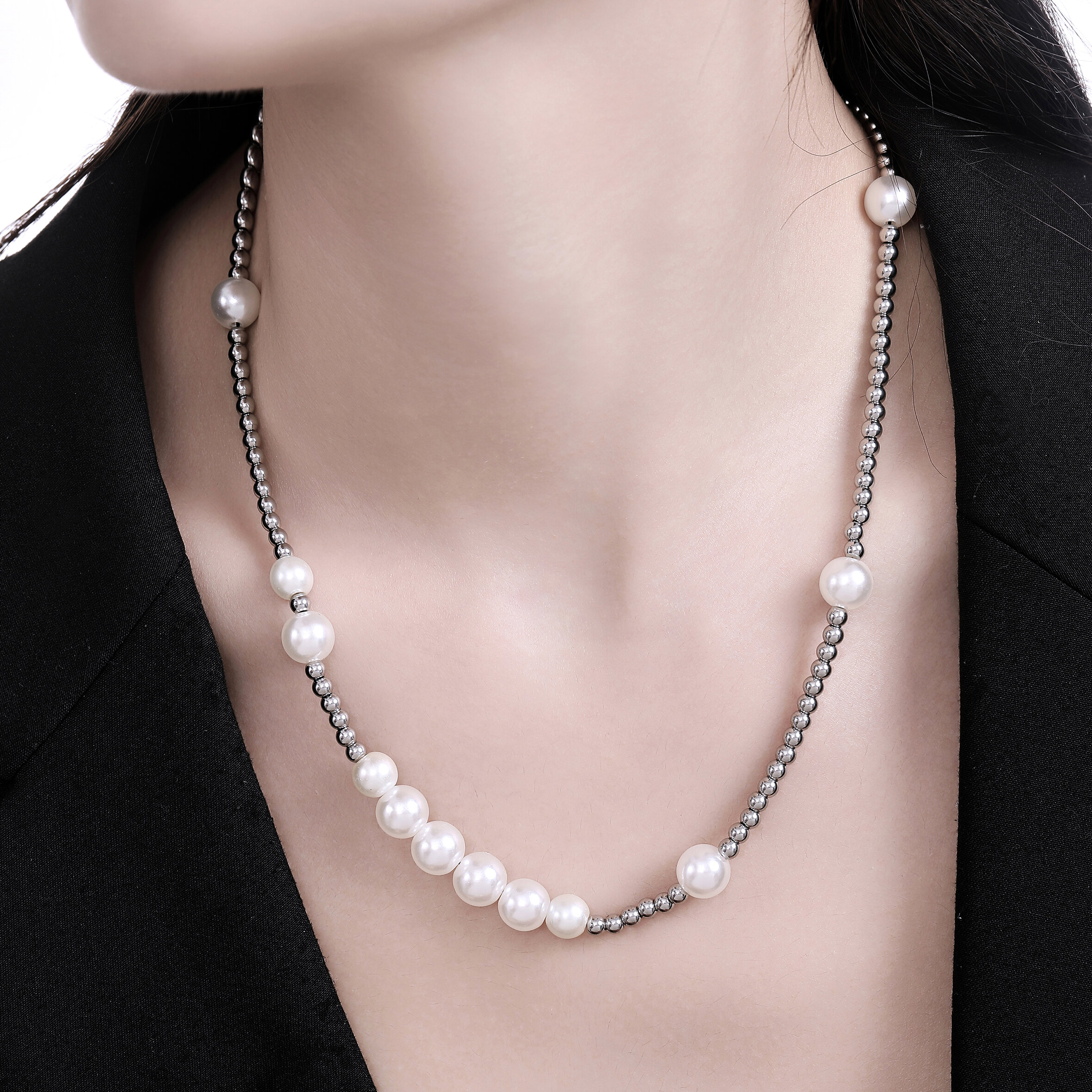 Asap rocky同款珍珠复古嘻哈钛钢拼接项链男女潮Hiphop欧美锁骨链